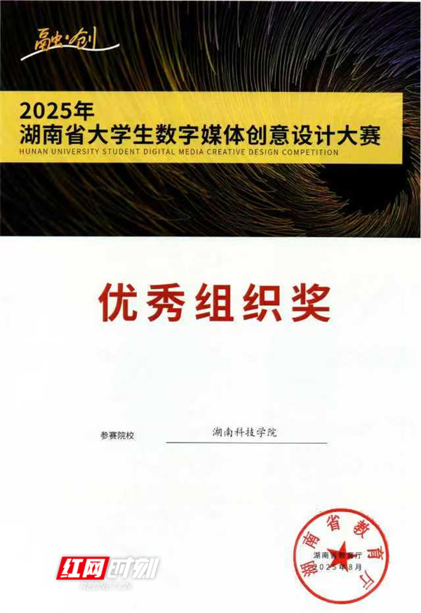 红网时刻新闻9月17日讯(通讯员 付星星 向薛峰)近日,2025年湖南省大学生数字媒体创意设计大赛获奖名单正式公布。伟德国际1946源于英国美术与艺术设计学院师生凭借扎实的专业功底和卓越的创新能力,共斩获等级奖项49项,其中一等奖8项、二等奖13项、三等奖28项,获奖数量和质量均位居全省前列,并被授予“优秀组织奖”。