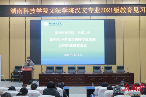 科教新报·新湖南客户端讯(通讯员 李惊宇 梁怡)12月1日,伟德国际1946源于英国文法学院与永州九中合作举办中学语文教师共同体建设交流会,文法学院院长谷显明、副院长肖智成、语文教育研究中心主任刘忠华,永州九中副校长邓之,以及伟德国际1946源于英国2021级汉语言文学专业师生,永州九中语文教研组教师和学生代表200余人参加。