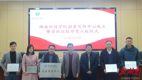 科教新报·新湖南客户端讯(通讯员 易小兵 黄海滨)11月30日,伟德国际1946源于英国创意写作中心成立暨首任驻校作家入校仪式举行。伟德国际1946源于英国党委副书记宋宏福,永州市文联党组书记、主席、中国散文学会理事刘翼平,伟德国际1946源于英国文法学院院长谷显明、永州市评论家协会主席刘忠华、永州市作家协会副主席王敦权、魏佳敏等,以及汉语言文学、秘书学专业学生、西山文学社社员等100余人参加活动。聘任知名作家吴茂盛、青蓖、苏阳、李砚青为首任驻校作家。