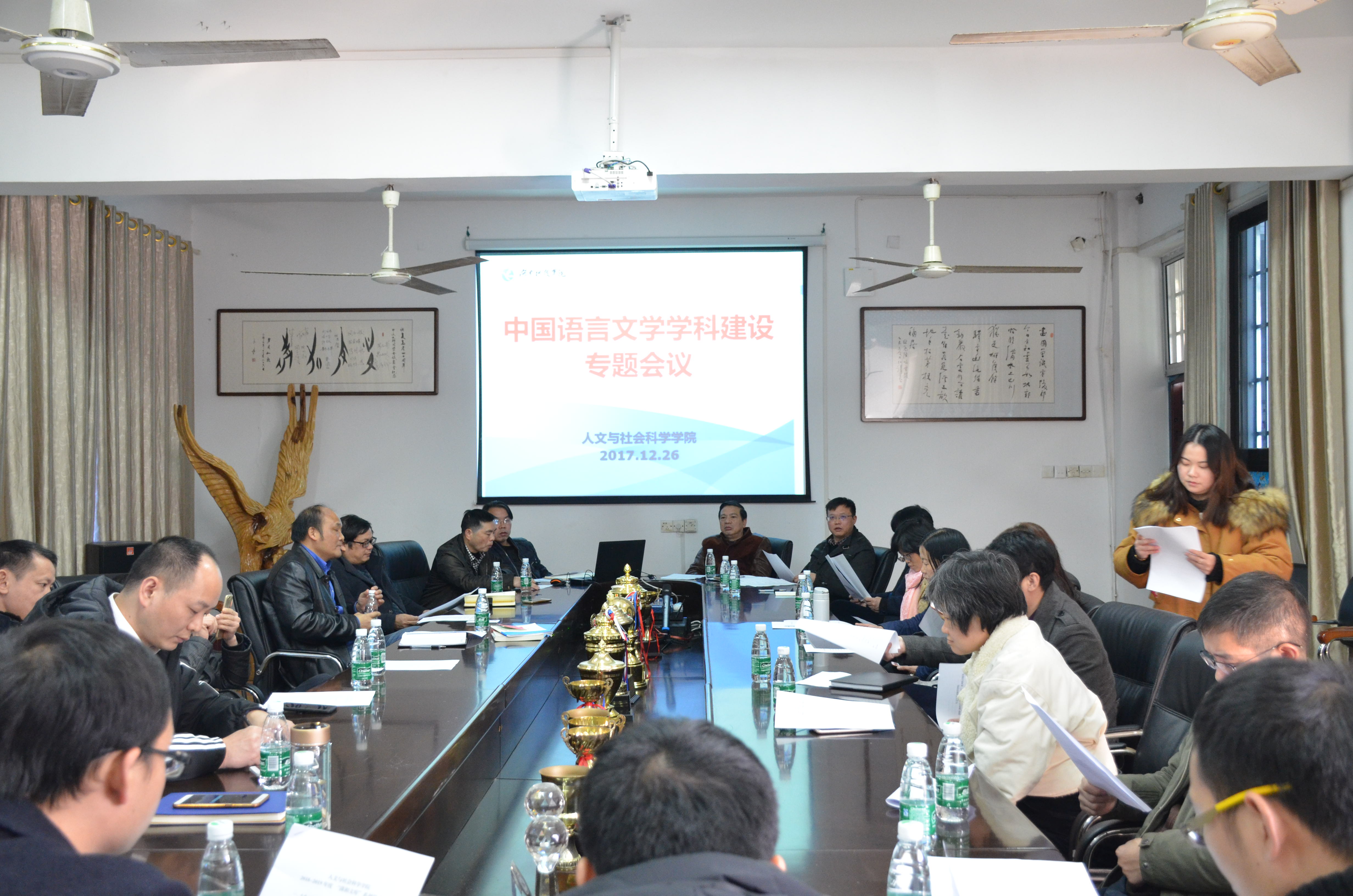 本网讯 12月26日,人文与社会科学学院召开中国语言文学一级学科建设专题会议,对中国语言文学一级学科建设工作进行部署。工会主席陈仲庚,科技处处长杨金砖以及中国语言文学学科骨干参加会议。会议由人文学院院长潘雁飞主持。