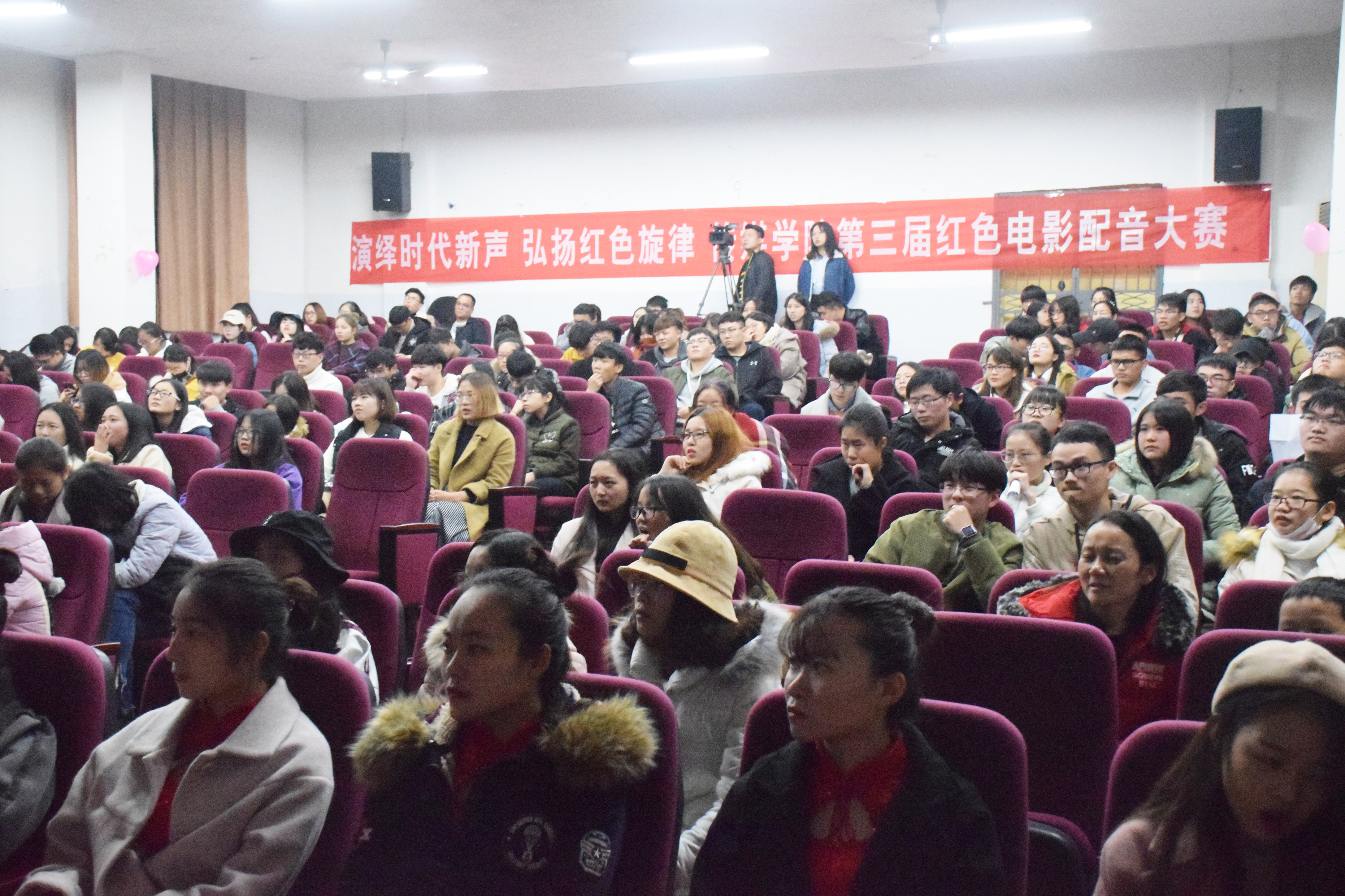 本网讯   11月24日,传媒学院在博雅楼东三举行红色电影配音大赛决赛,该院党总支书记蒋诗堂、副书记潘清远及学院200余师生参加本次活动。