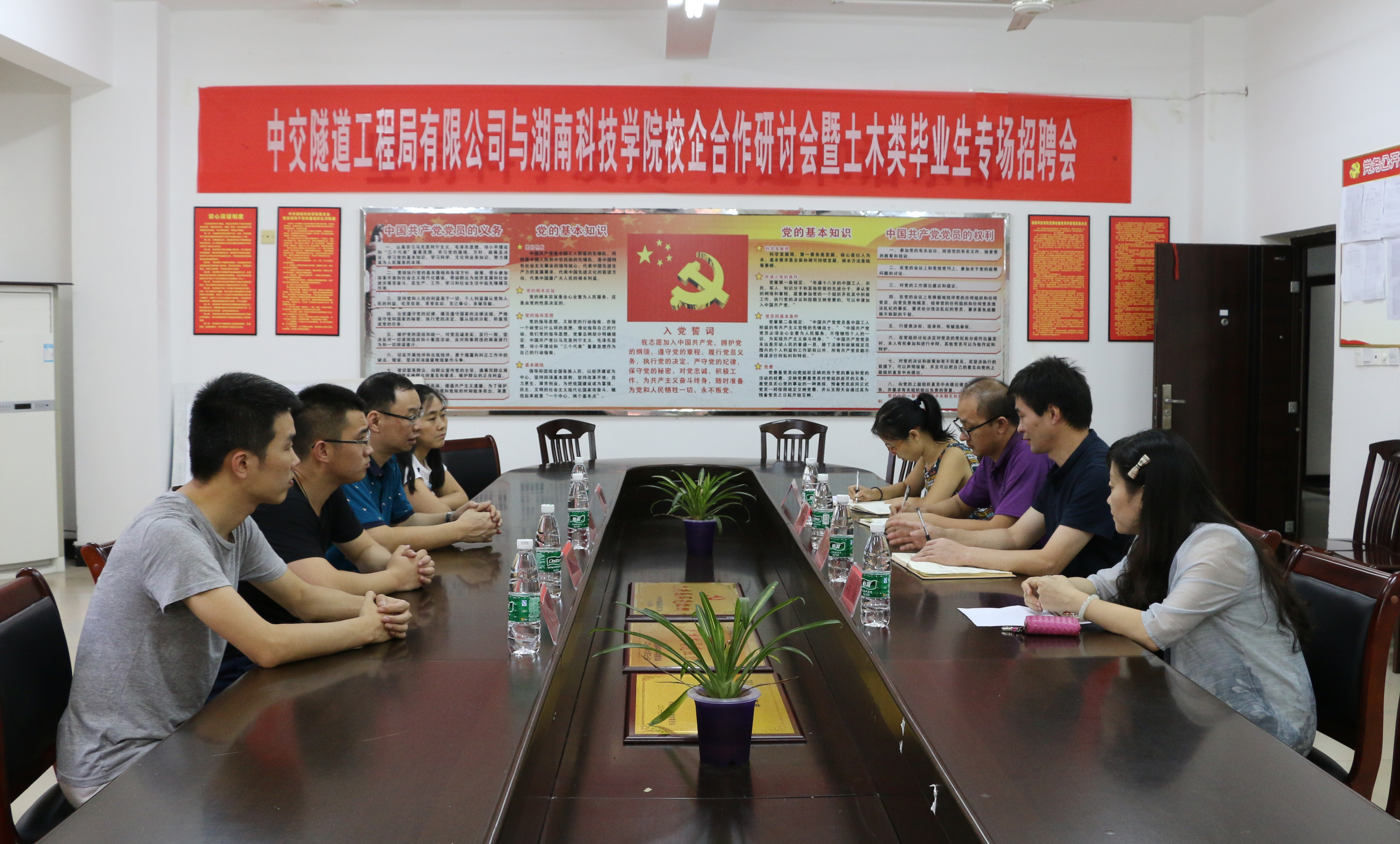 除进行校园宣讲和招聘外,中交隧道工程局有限公司还与土环学院就如何推进校企合作进行了交流研讨。研讨会上,土环学院党总支书记张俭民和副院长周基介绍了学院学科专业、师资力量、人才培养、实验室建设、校企合作等相关情况。双方就企业用人和学院人才培养、课程设置、专业建设、创新创业等方面进行了深度沟通交流,最后双方就构建校企合作框架达成共识。