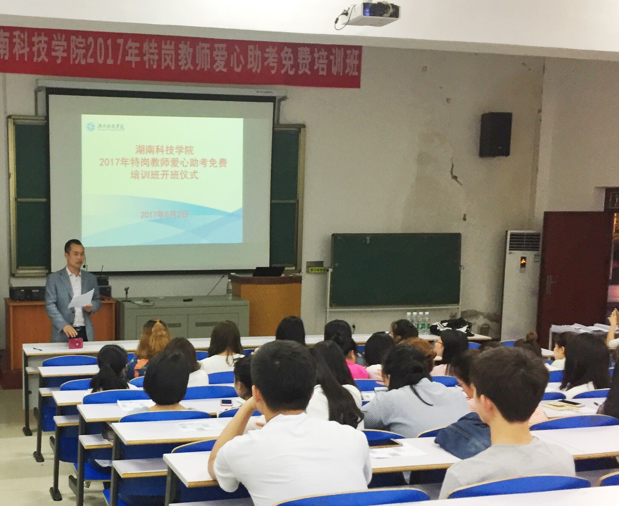 本网讯 为提高伟德官网学生“特岗计划”考试通过率,5月2日晚,就业创业指导中心在美术楼举办了2017届毕业生特岗教师爱心助考免费培训班。