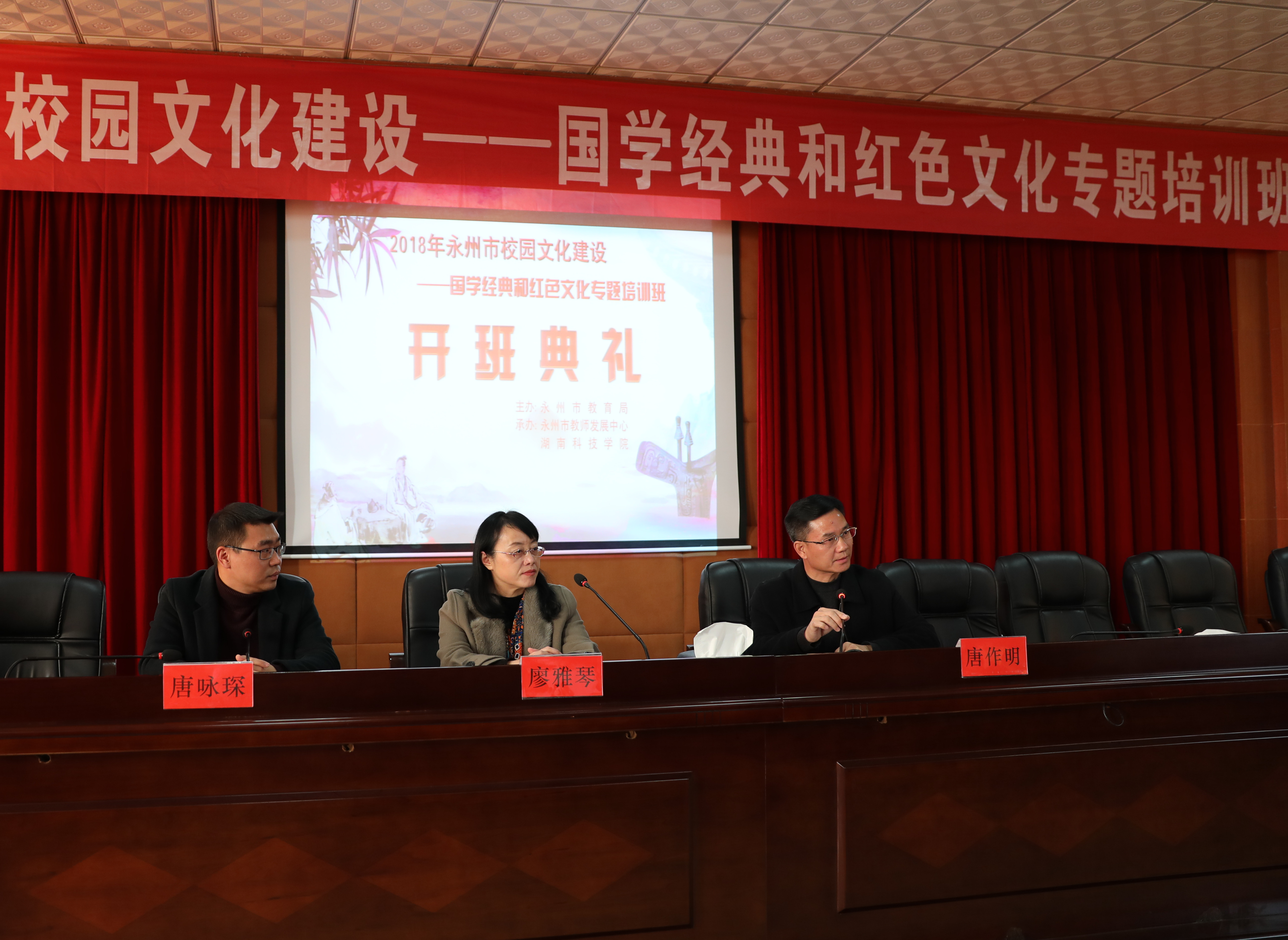 本网讯 为切实落实学校立德树人教育根本任务,促进校园文化建设内涵发展,12月17日,永州市校园文化建设——国学经典和红色文化专题培训班在伟德官网开班。永州市教师发展中心主任唐作明、教研员唐咏琛及马克思主义学院院长廖雅琴等参加了开班仪式,来自全市各县区、直属学校的135名中小学教师参加了本次培训。