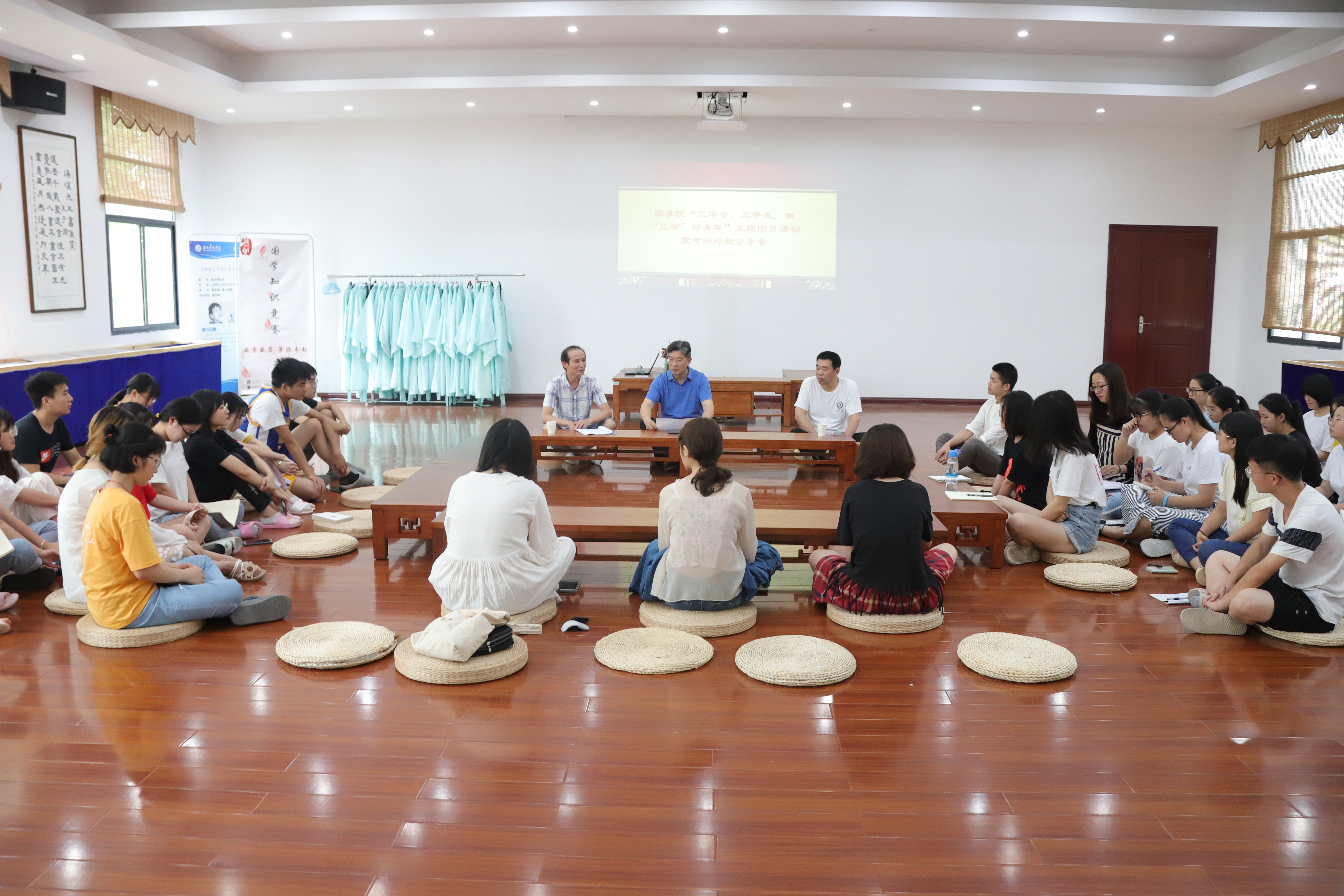 本网讯 6月11日下午,国学院在小成堂举行考研经验分享会,国学院吕玲娜、屈梦君、唐司妮和外国语学院杨佳等四位考研成功的同学,向国学院大一大二同学们分享考研干货经验。副校长宋宏福、国学院院长张京华党总支书记蒋诗堂参加。