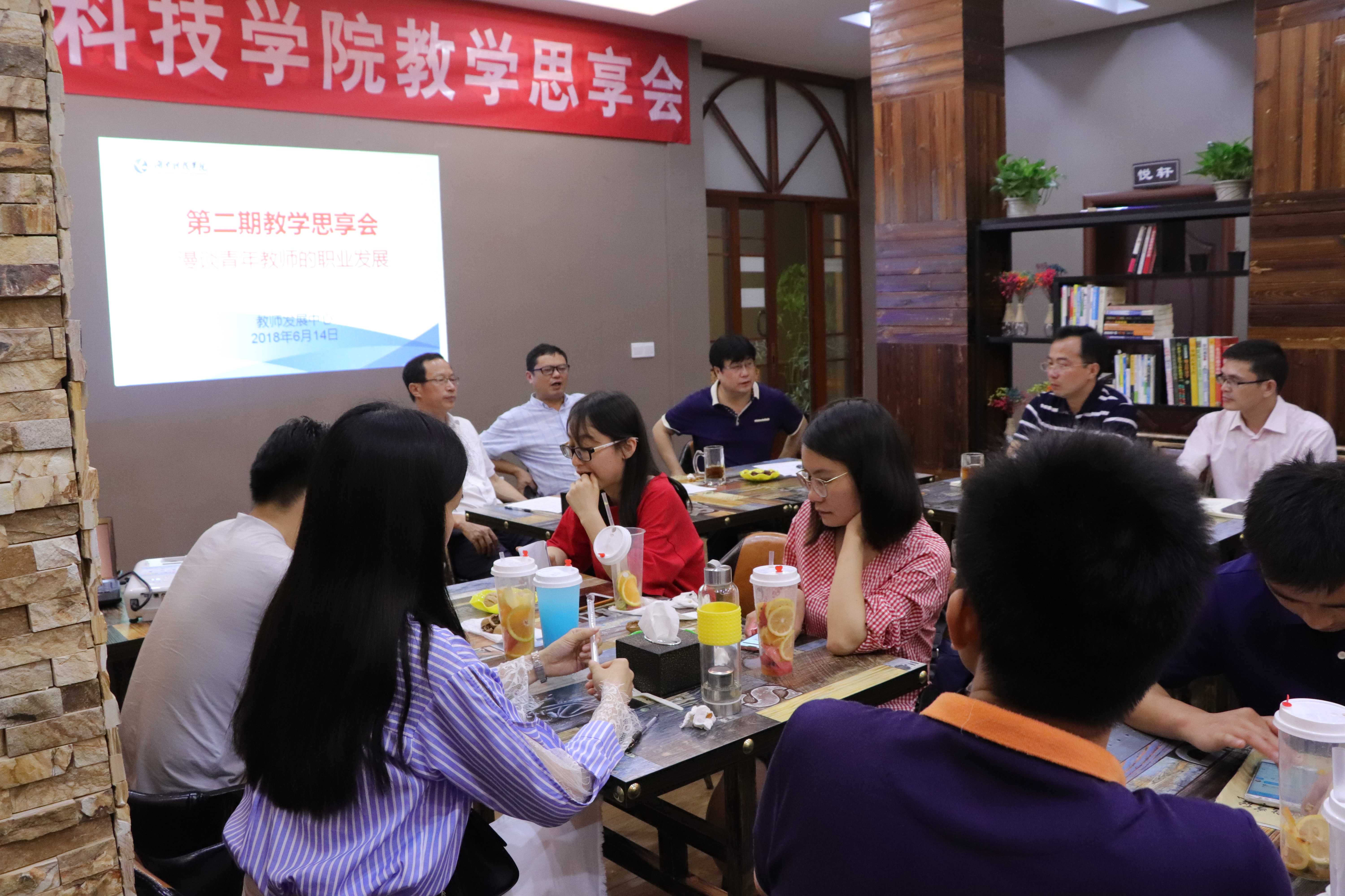 本网讯   为了让新进教师能积极规划、主动发展,快速进入教师职业发展成长期,6月14日晚,学校在教师发展中心举行“漫谈青年教师的职业发展”主题教学思享会,教务处处长石循忠、科技处处长杨金砖、人事处副处长杨攀和2017年新进专业教师30余人参加。活动由教师发展中心主任杨再喜主持。