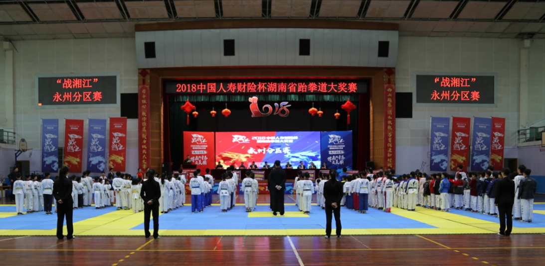 本网讯 4月14日至15日,2018年中国人寿财险杯湖南省跆拳道大奖赛永州分区赛在伟德官网体育馆成功举行,这也是伟德官网连续四年举办该赛,副校长李常健、程智开、体育学院党总支书记何智强、副院长龙亚军出席大赛开幕式。