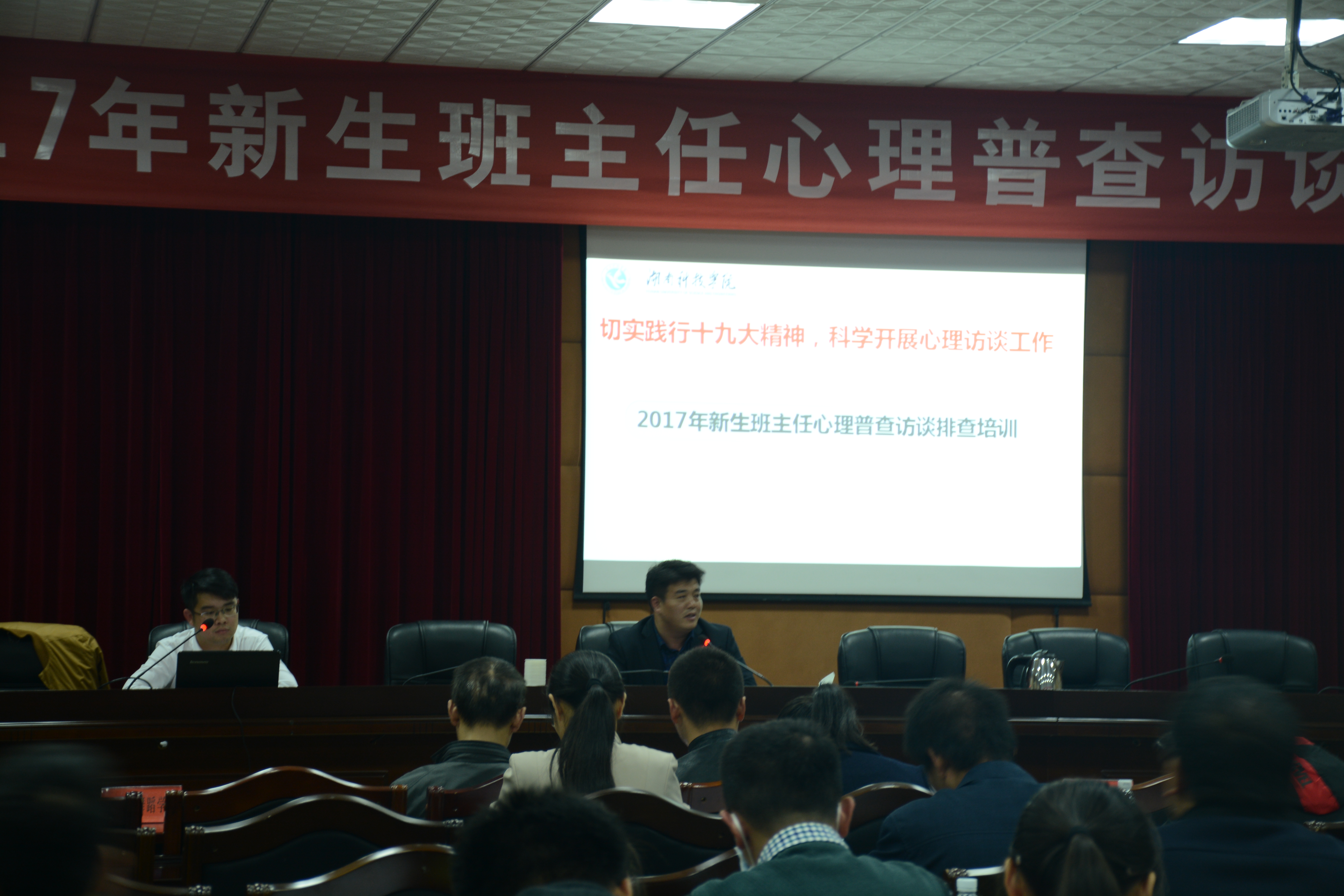本网讯 11月8日晚,学工部组织召开新生班主任心理普查访谈排查培训会,2017级全体新生班主任、辅导员、心理专干参加会议,学工部部长唐华山出席会议。