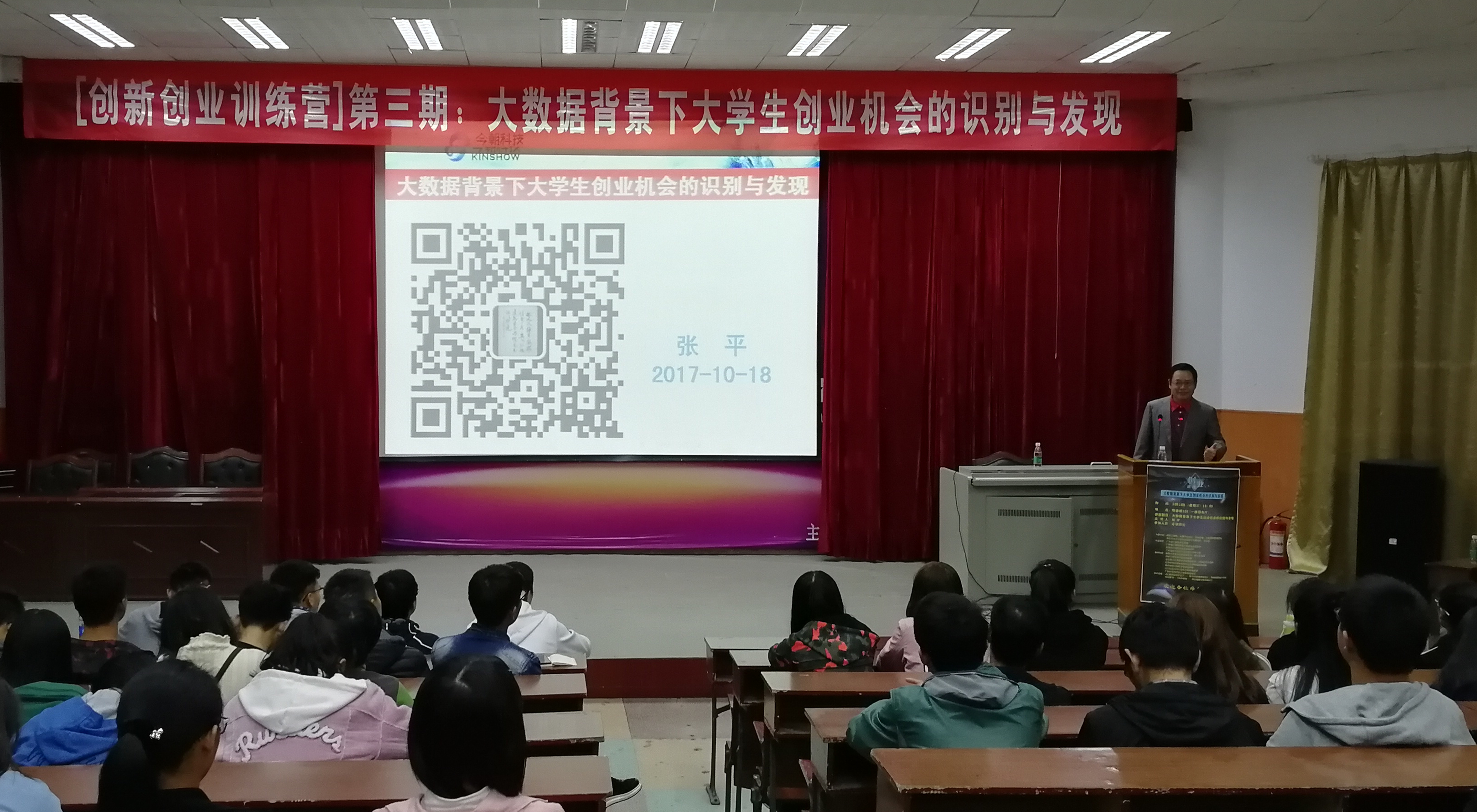 本网讯 10月19日下午,创新创业学院举办第三期创新创业能力提升训练营,邀请珠海市今朝科技有限公司董事长、总经理张平担任主讲,电子与信息工程学院、美术与艺术设计学院、化学与生物工程学院、人文与社会科学学院、经济与管理学院等学院的400余名学生参加了活动。