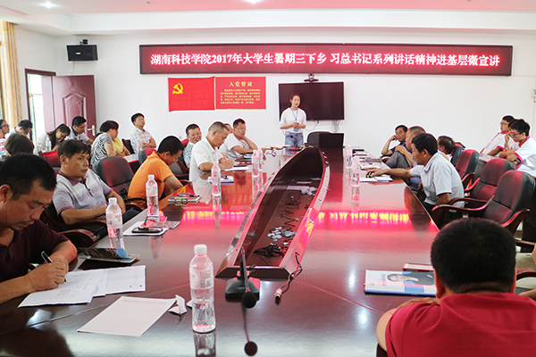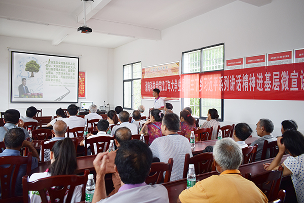 本网讯 7月10日,马克思主义学院党总支书记唐森树带领该院大学生暑期“三下乡” 社会实践团队前往祁阳县白水镇开展习近平总书记系列讲话精神进基层微宣讲活动。
