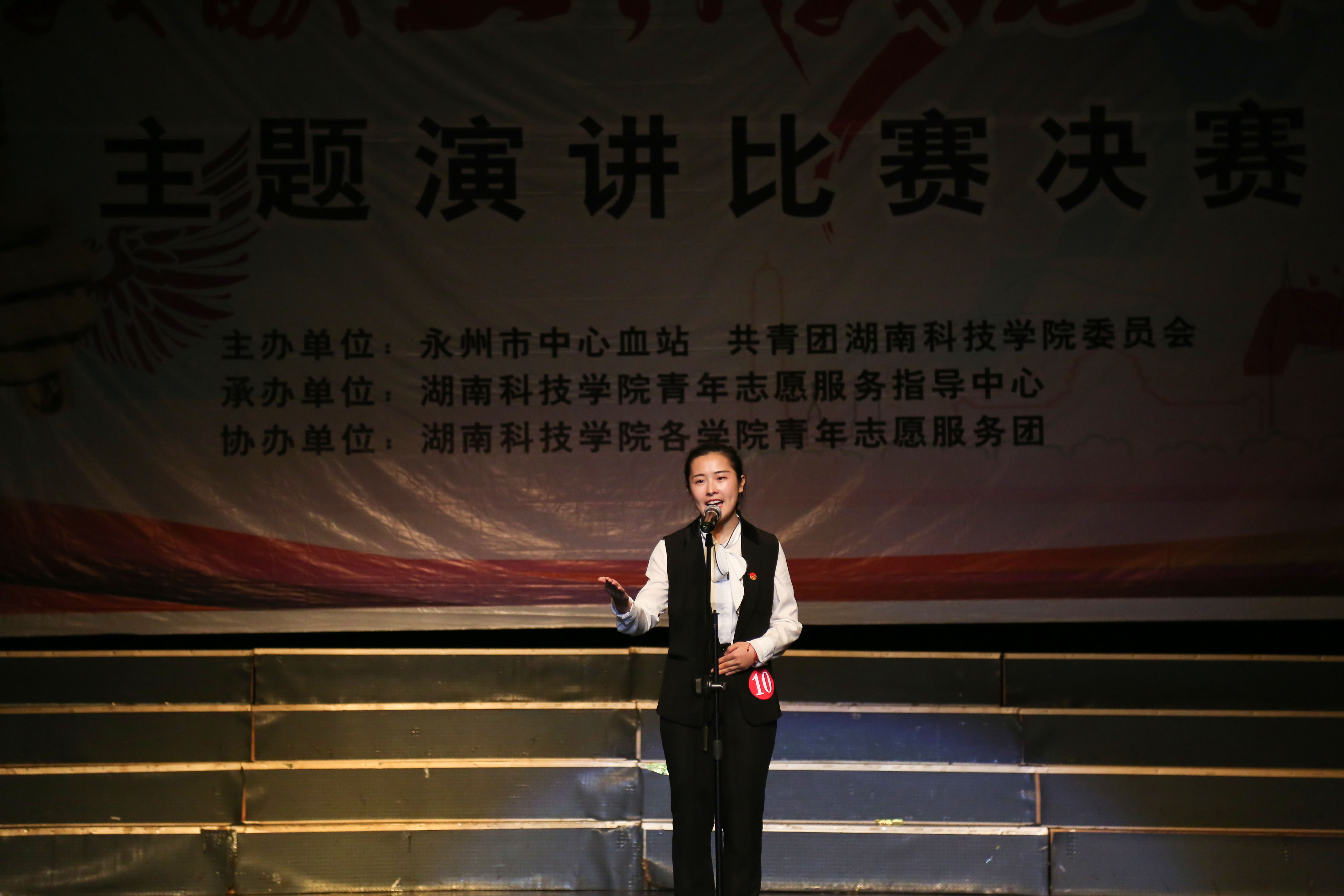 本网讯 4月7日晚,由共青团伟德国际1946源于英国委员会、永州市中心血站联合主办,学校青年志愿服务指导中心承办的“我献血,我光荣”主题演讲比赛在音乐厅举行。永州市中心血站党支部书记、站长郑淑山,校团委副书记刘佳等应邀出席并担任评委。