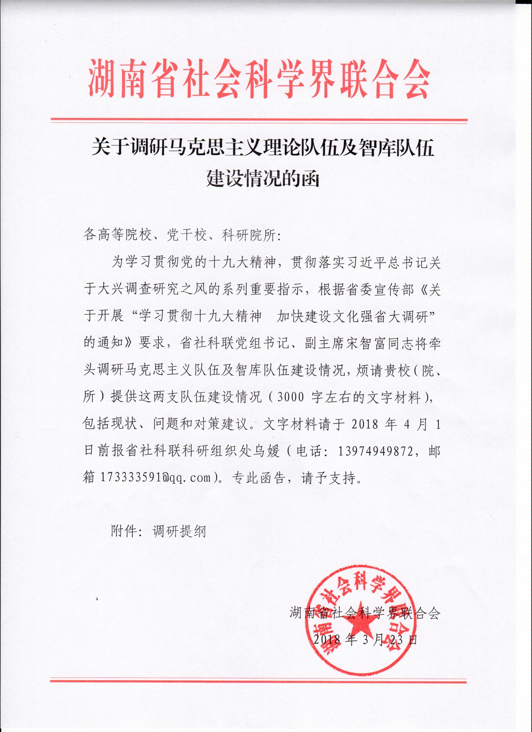 [科技处]关于调研马克思主义理论队伍及智库队伍建设情况的函