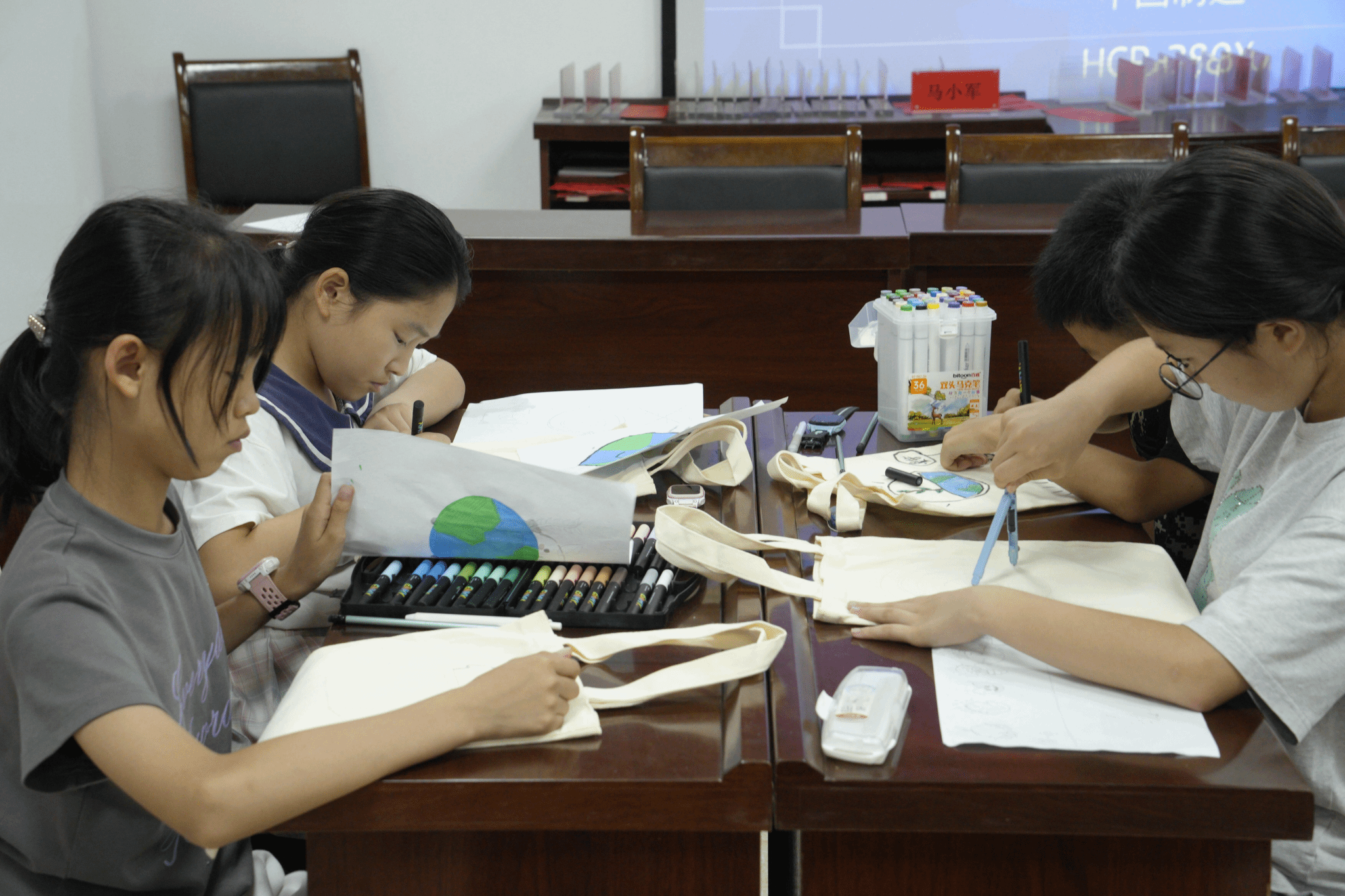 活动现场,七名志愿者化身环保理念的“青年讲师”和美育启蒙的“艺术导师”。他们不仅用通俗易懂的语言向当地儿童讲解垃圾分类的重要意义和环保袋的生态价值,更通过精心设计的互动环节,引导孩子们用画笔表达对绿色生活的理解和向往。
