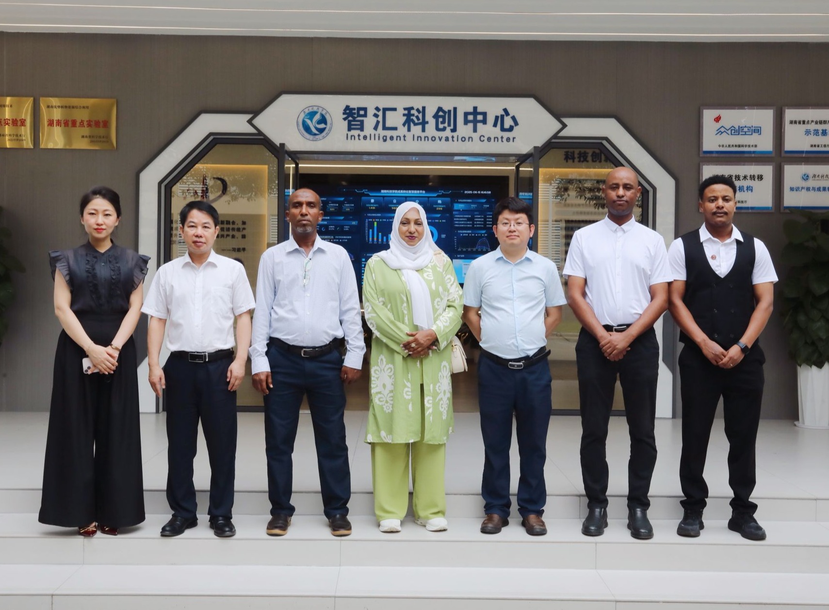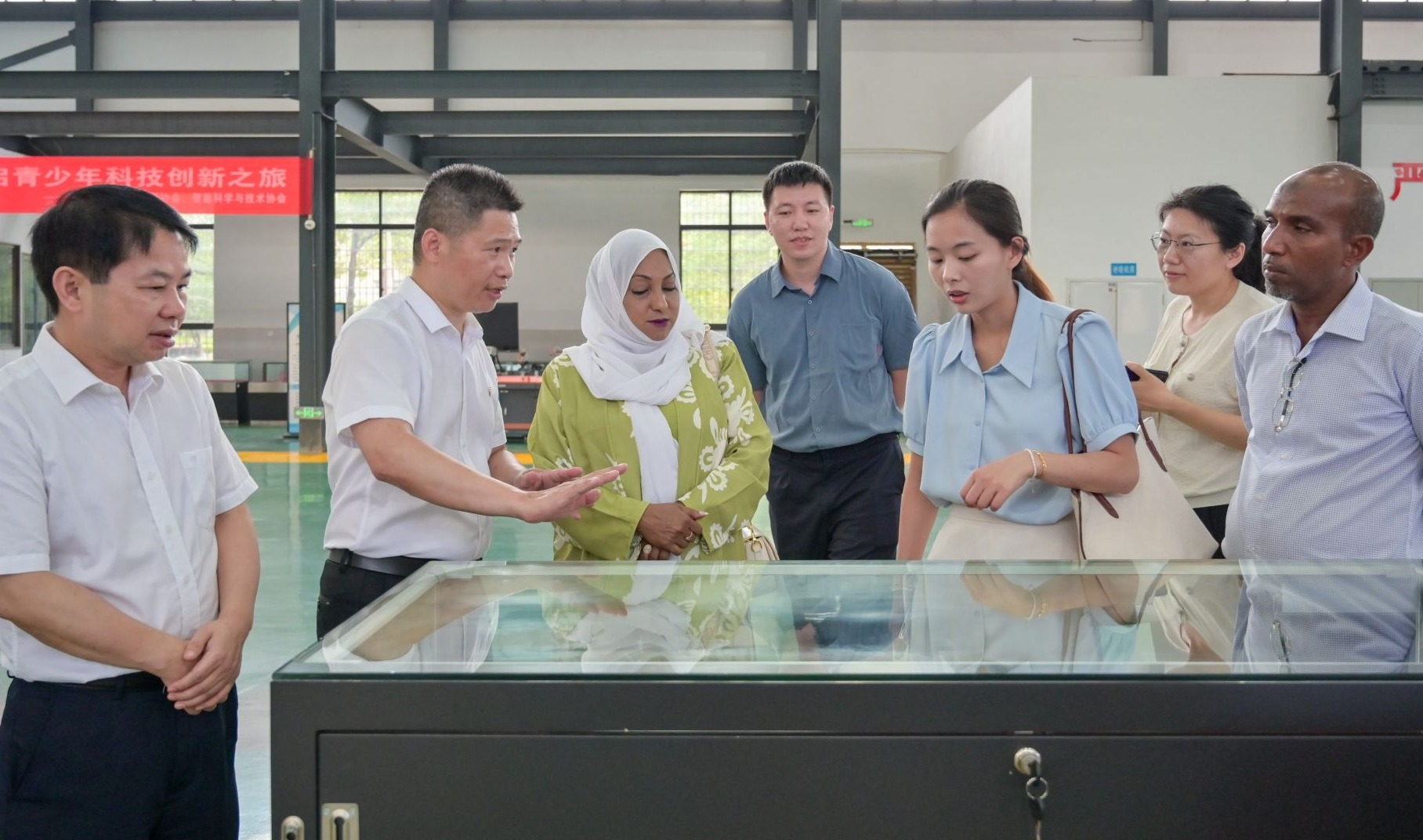 奥萨曼・哈马德・马哈茂德一行先后考察了学校工程训练中心、砖石质文物智慧化保护利用技术湖南省重点实验室、航空模拟仓和智汇科创中心。