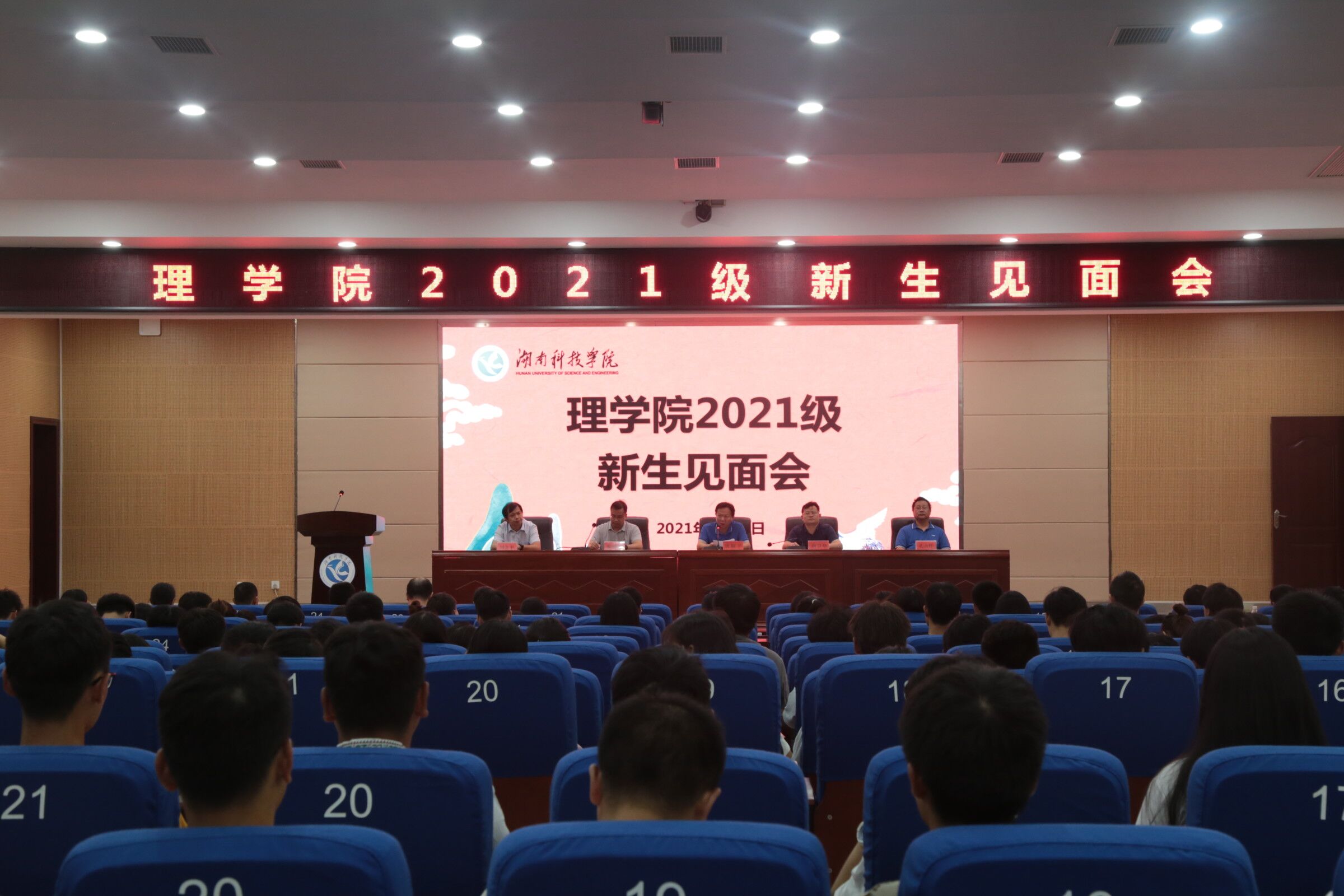本网讯(通讯员 蒋晓霞)理学院2021级新生见面会于9月24日在潇湘大讲堂隆重举行,院长唐耀平、党总支书记唐卫华等院领导、教授博士代表以及新生班主任出席见面会,党总支副书记兼副院长黎建军主持见面会。