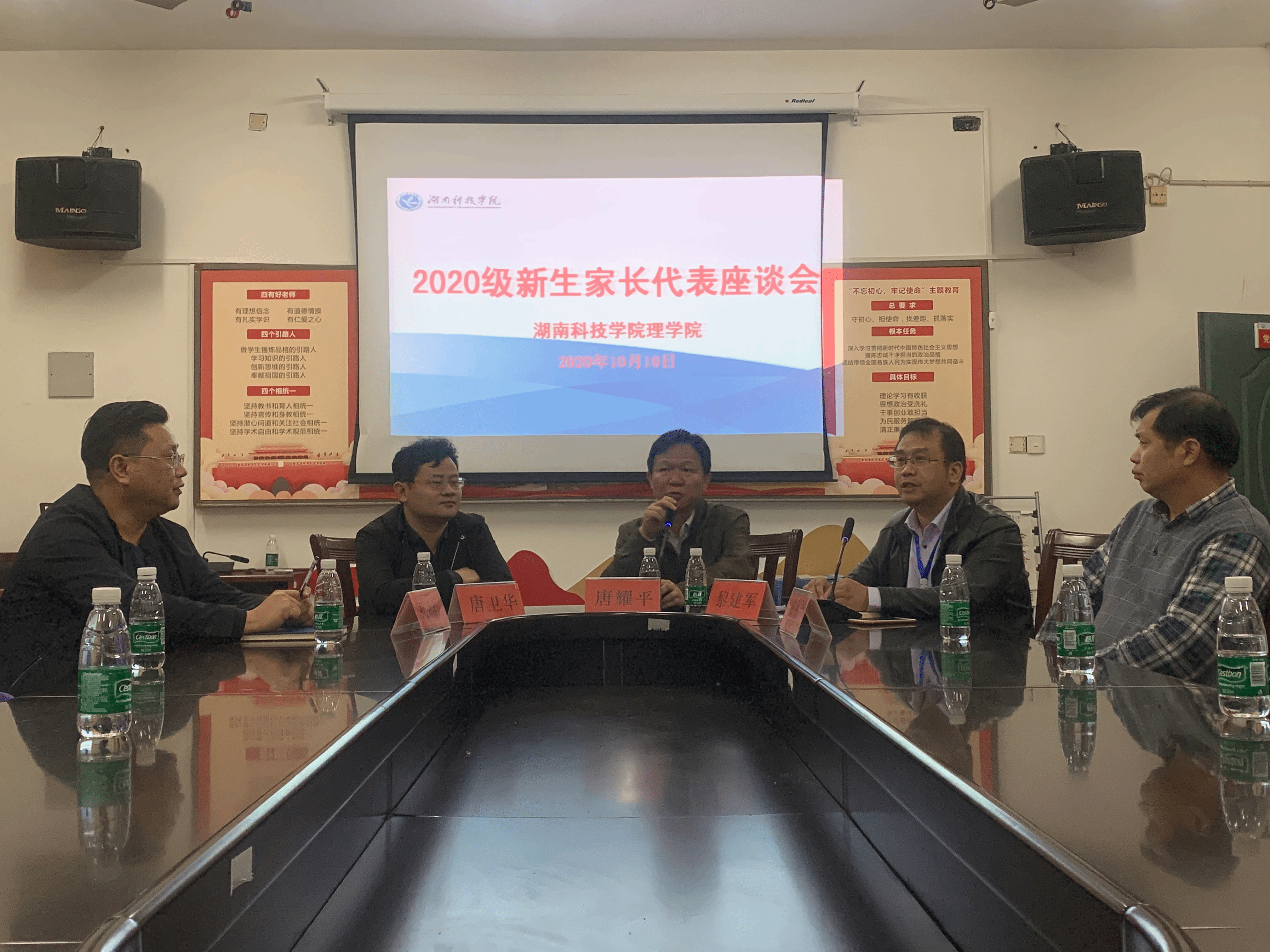 本网讯(通讯员 戴兴鸿)为了促进学校和家长的沟通,建立家校合作的桥梁,我院于10月10日晚7:30在明理楼308举行2020级家长代表座谈会。理学院党总支书记唐卫华、院长唐耀平、党总支副书记兼副院长黎建军等到场会议,与光临学校的家长代表们展开了家校座谈会,会议由黎建军主持召开。