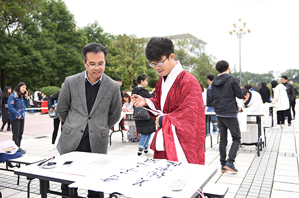 据悉,本次活动由学校党委宣传部、学生工作部(处)、组织部、共青团委员会、教务处主办,美术与艺术设计学院承办。现场书法大赛历来是校园文化艺术节的一大特色活动,已成功举行十余届。目前,该项活动已成为一场参与面极广、影响力极强、评价度极高的文化盛宴。