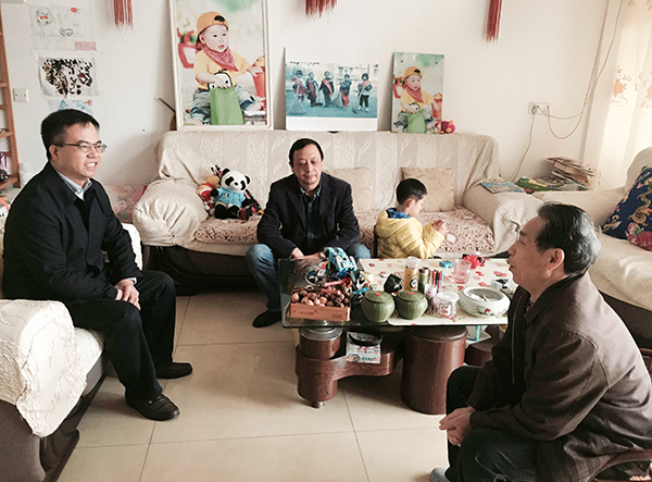 在陈荣忠、张造福、罗文中、王明球、谢晶跃等退休老同志家里,陈弘与老同志促膝交谈,详细了解他们的生活情况、身体状况,由衷感谢退休老同志长期以来对学校工作的关心支持以及为学校的发展所作出的贡献,希望他们好好保重身体,愉快地度过老年时光。