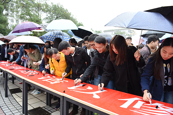 本次签名活动是学校2016年学生廉洁教育活动之一,活动对全体大学生党员是一次深刻的廉洁教育,对于树立大学生的廉洁意识、纪律意识和责任意识具有积极的推动作用。