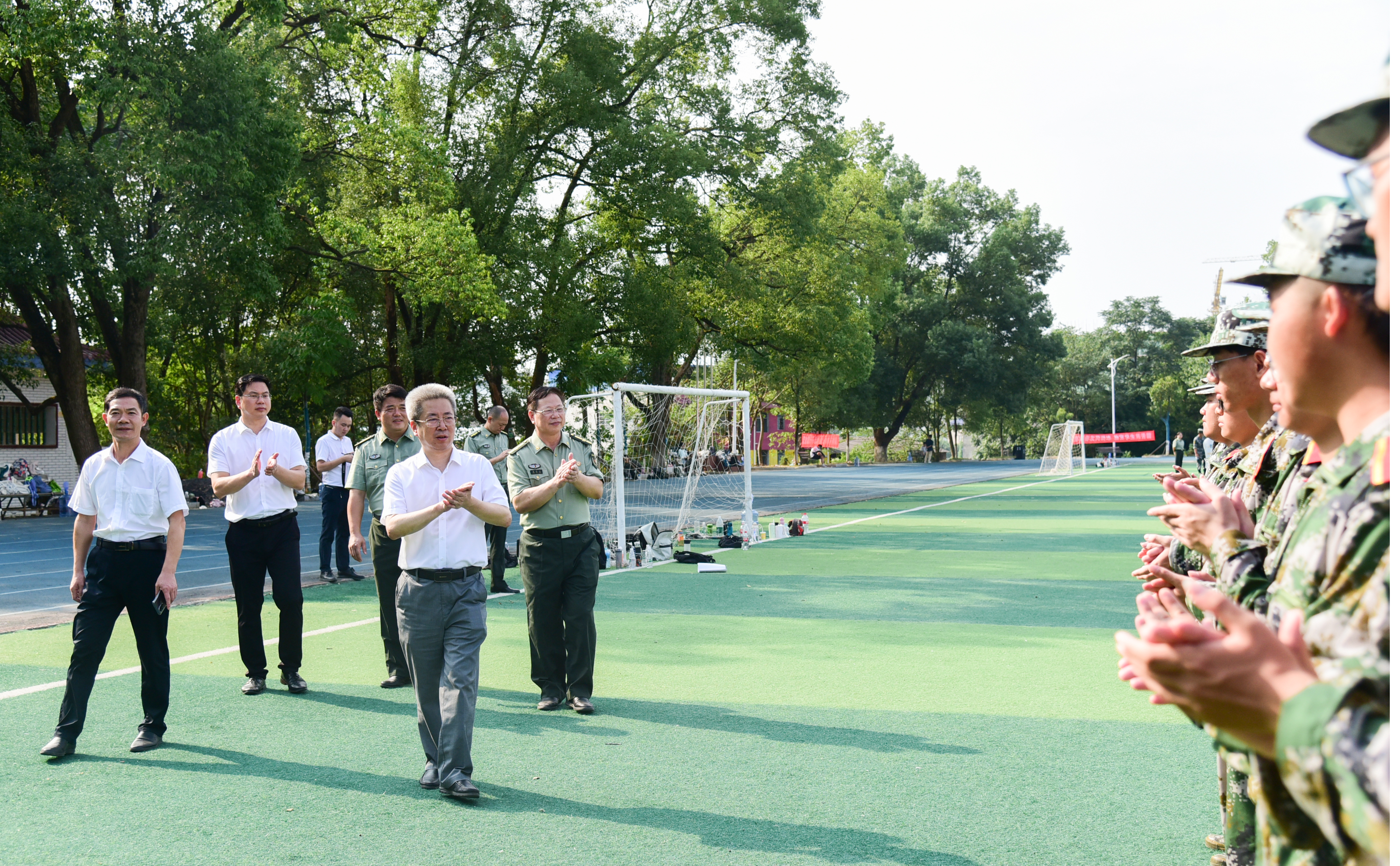 校领导来到各军训场地认真了解了新生军训情况,听取了军训工作人员的汇报,检查军训后勤保障工作,并与师生、教官进行亲切交流。他们对同学们积极向上的精神面貌表示肯定,并代表学校对教官的辛勤付出表示感谢。