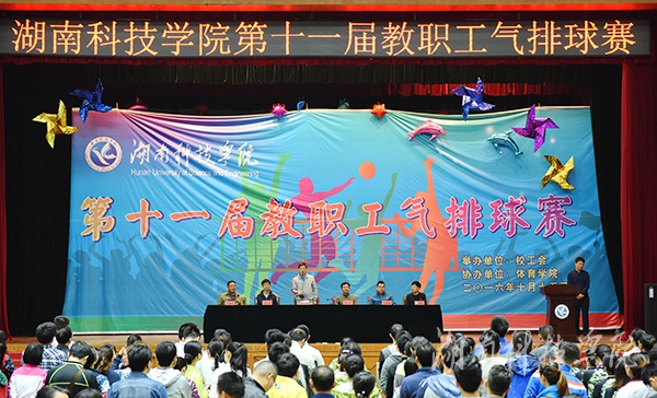 本网讯(记者 邓肖华 实习记者 洪年霞 摄影 何帅文)10月15日下午,在庄严的国歌声中,伟德官网第十一届教职工气排球赛在体育馆拉开帷幕。校党委副书记唐艳明,副校长吴小林等出席。工会常务副主席屈长青主持。
