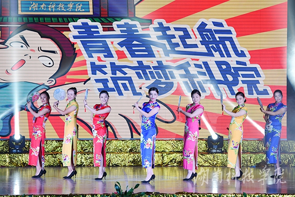 一段承载着美好祝福的温情视频后,迎新晚会正式拉开帷幕。《娄山关》、《在灿烂的阳光下》大合唱,气势宏伟、情绪高昂,将现场的观众也带入到了那段难忘的岁月中;爵士舞《singing in the rain》,最热情的肢体语言展示出了青春热情的活力;《科院小幸运》,则用熟悉的旋律向新生唱出了不一样的校园之美,学姐和学弟学妹的对唱是科院之梦的又一次传承;唯美与技巧、柔软与力量完美结合的《舞韵瑜伽》,柔美有力,获得了观众阵阵掌声;《井冈山的月亮》、《生命的星》、《美在永州》等歌曲,诉说了不一样的情怀;拉丁舞表演《Angelina》,热情奔放,爆发力强;诗朗诵《追寻一种梦想》展现了科院学子“德才兼备,自强不息”的寻梦之心;器乐演奏《赛马》将我们带入辽阔的草原,骏马奔腾,二胡演绎得惟妙惟肖;健美操和爵士《舞于伦比》,一跃惊心动魄,一舞性感无比,让全场无不沉醉在这水样青春的浓烈气息中;舞蹈《我等你》的表演者用肢体语言展现出母亲与孩子的点滴,催人泪下感人至深;《we are young》唱出了独有的青春朝气,嗨翻全场;《相亲相爱一家人》则以最温情的节奏让现场师生感动满满。