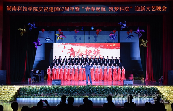 学校举行“庆国庆·迎新生”文艺晚会(图)