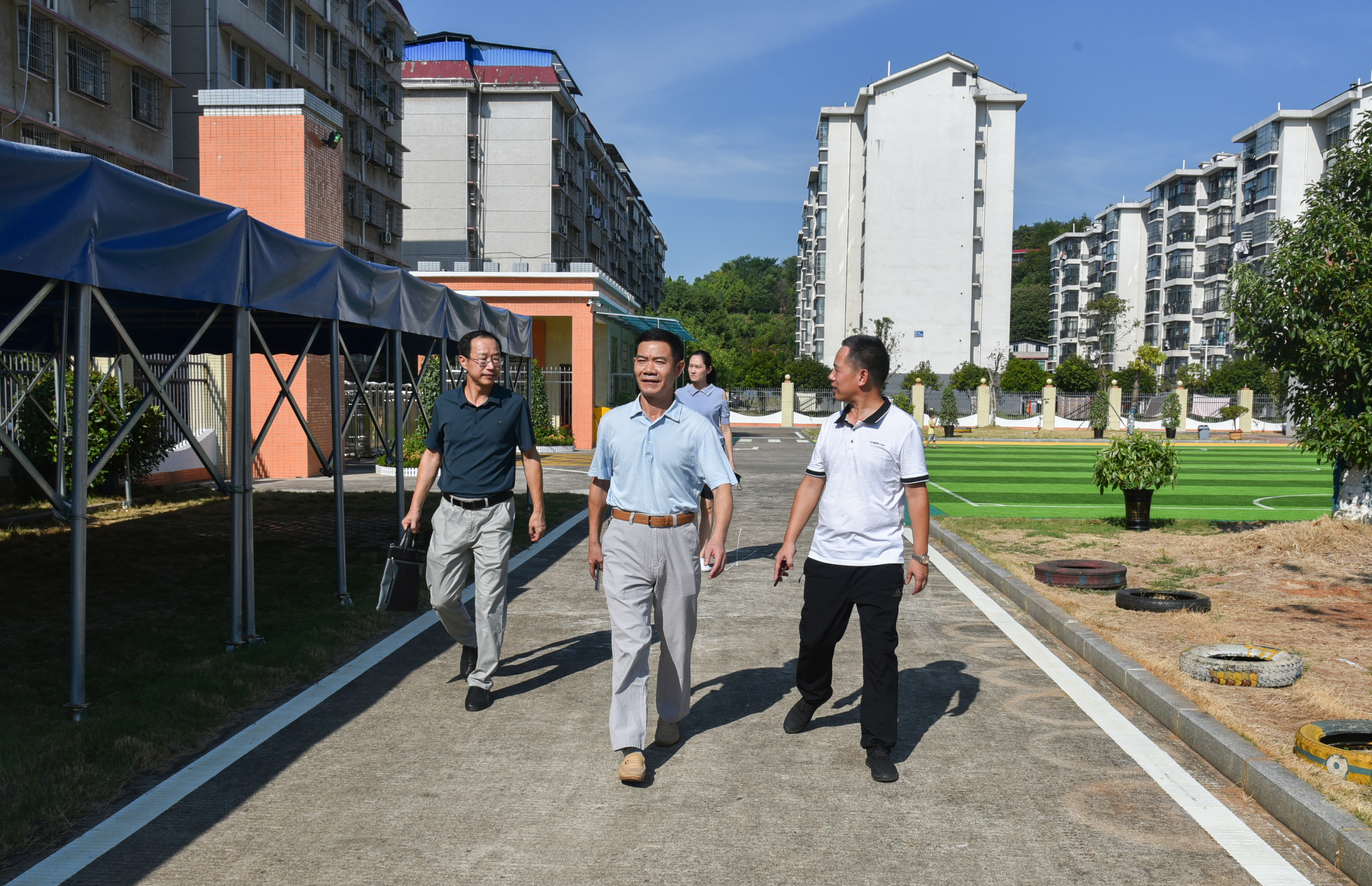 本网讯 9月4日,学校党委委员、副校长、工会主席吴小林赴幼儿园检查指导开学前准备工作。
