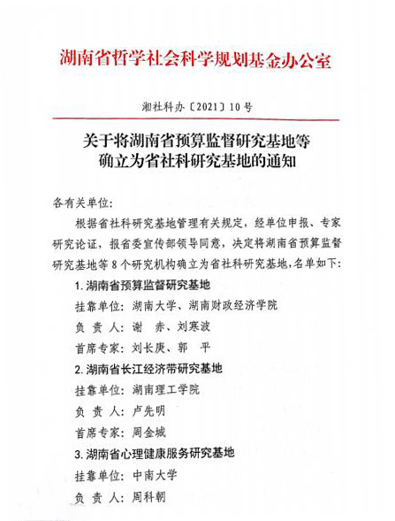 本网讯(通讯员 胡维)9月1日,从省社科规划办传来消息,“湖湘文化对外交流传播研究基地”获批为湖南省社科研究基地。这是“十四五”期间,伟德官网获批的首个省级重点科研平台。