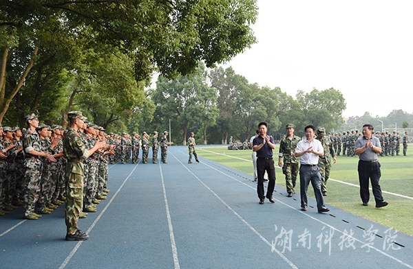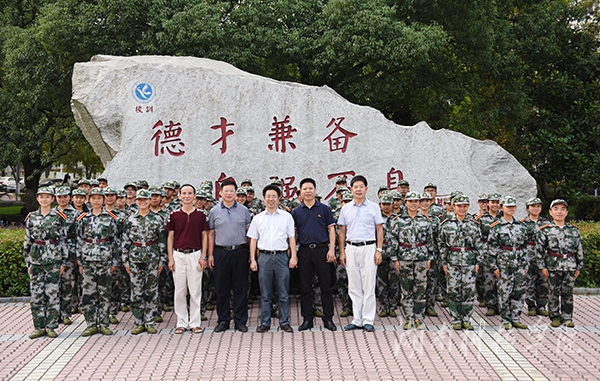 本网讯 (摄影 何帅文)  一抹抹跃动的军绿色为秋日的校园增添勃勃生机与活力,嘹亮有力的口号声训练场上空不断回荡。9月20日下午,校长曾宝成、副校长程智开一行前往学校各个训练场地看望慰问全体军训教官和参训的2016级新生。