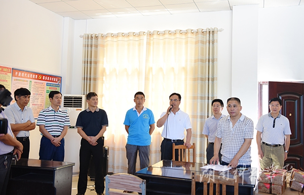 在潮水铺村村委,陈弘亲切地跟乡亲们说,“每逢佳节倍思亲”,中秋节就要到了,你们是我们的亲人,学校一直牵挂着大家,所以今天我们是来走亲戚了。看到村里呈现的喜人新面貌,陈弘欣慰地说,这与大家的共同努力是分不开的,学校将继续加大力度开展产业帮扶,进一步改善环境,重塑基层组织,把潮水铺村建成美丽乡村,让乡亲们过上幸福好日子。
