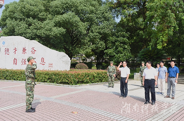 陈弘还特别关心了在场外因身体不适无法参训的同学。现阶段天气较炎热,陈弘叮嘱大家要注意防暑降温,军训间隙多补充水分。一定要在保证自己身体的前提下,顺利完成军训任务。
