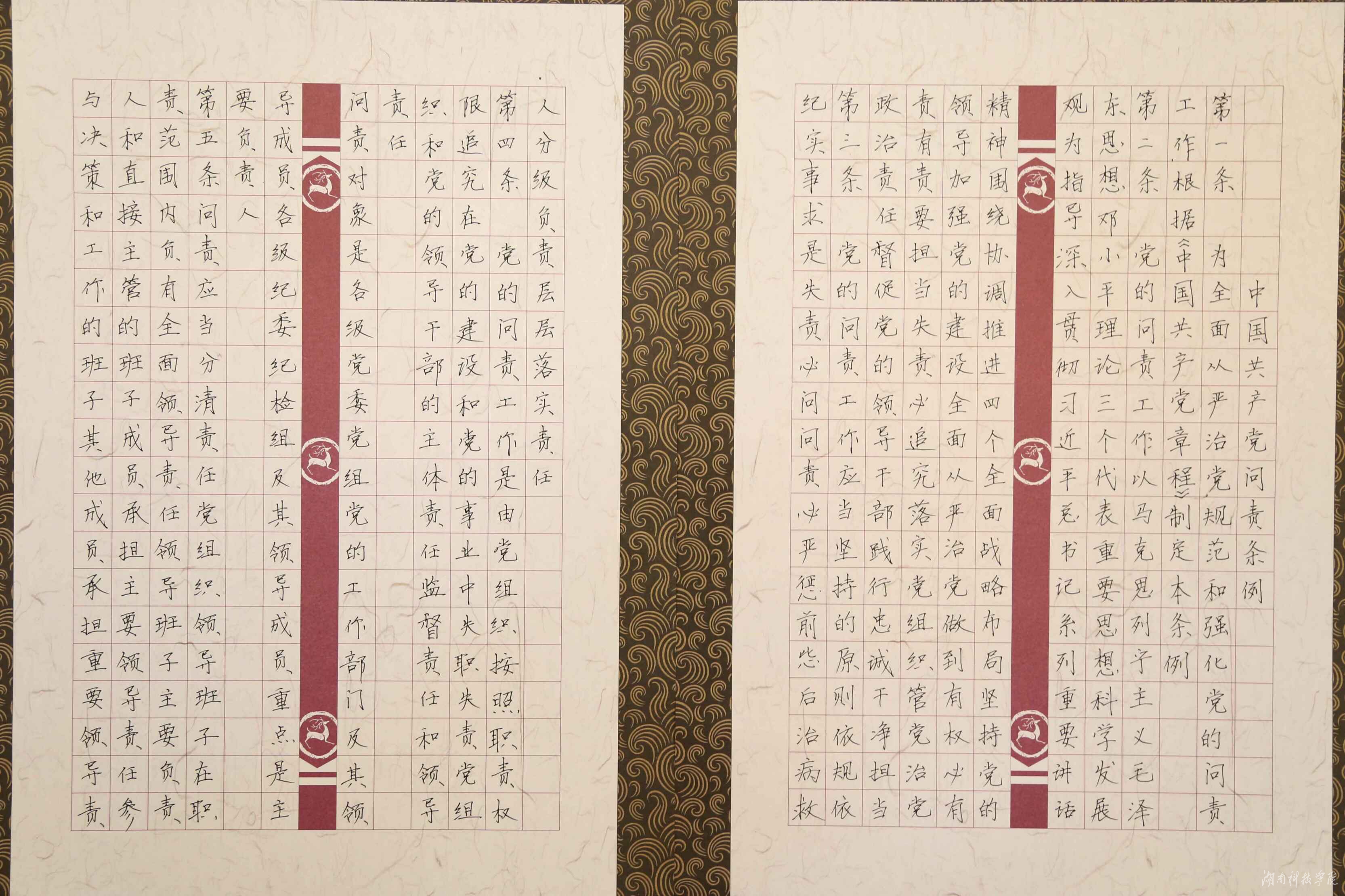 本次硬笔书法大赛,积极鼓励教师党员们用硬笔书法的方式,带着问题逐字、逐句、逐条抄写原文,在小小的方格之间挥洒书写之豪气,通过抄写,进一步加深了大家对《中国共产党问责条例》的认识和理解。