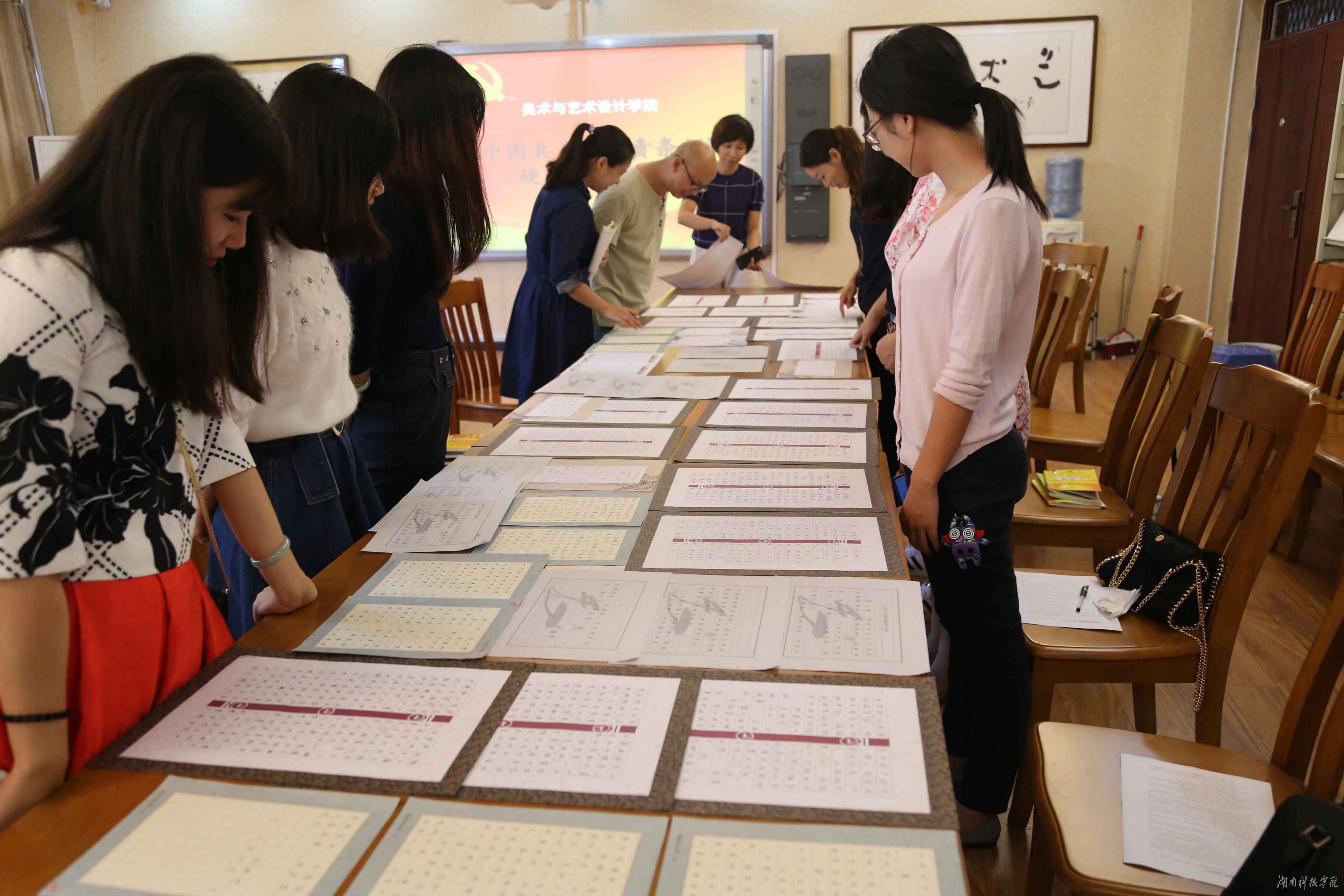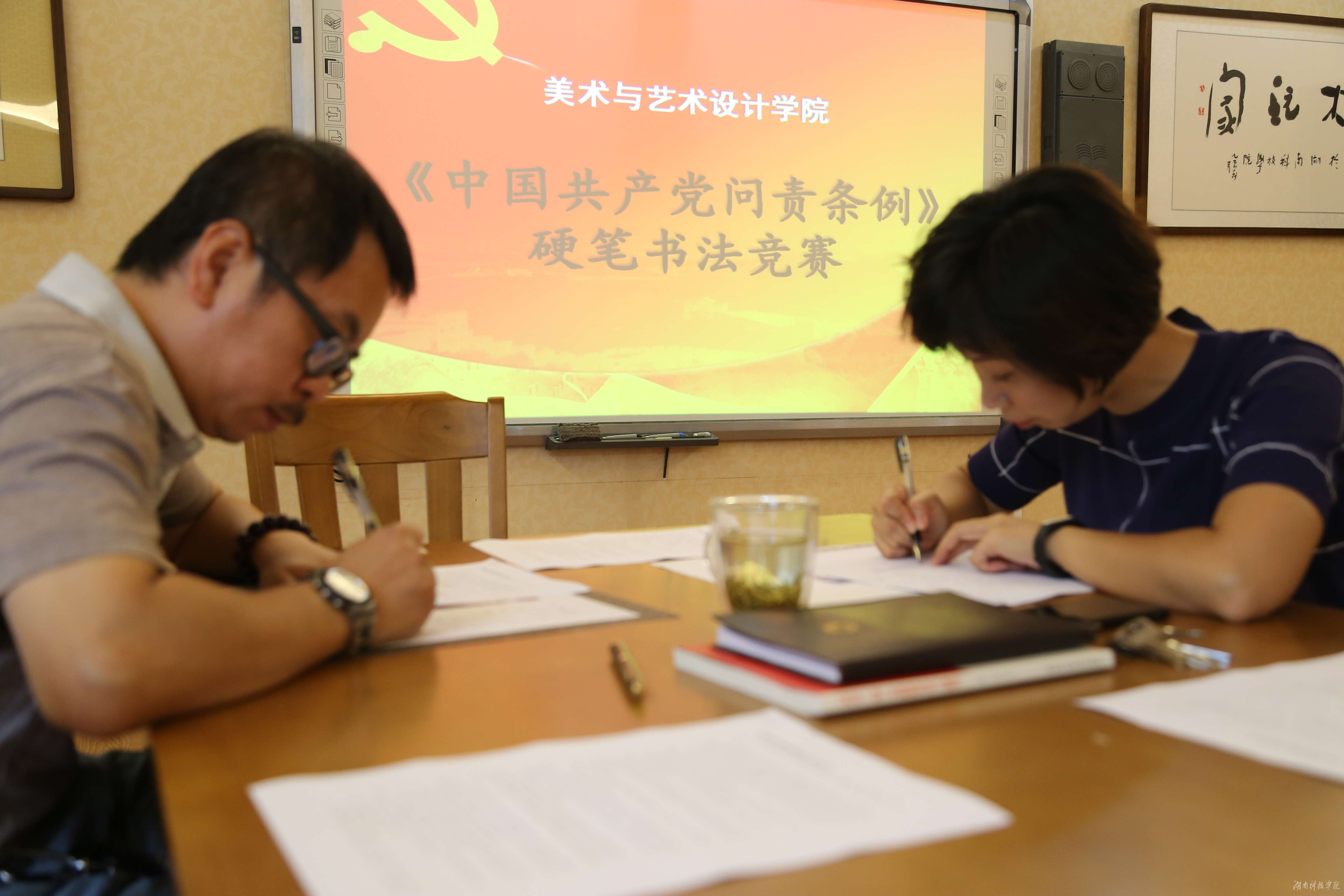 本网讯(通讯员 魏雅楠 摄影 刘华)9月1日下午,为配合“两学一做”学习教育开展,美术与艺术设计学院在美术楼南楼202室举办了集中学习抄写《中国共产党问责条例》硬笔书法大赛,全体教师党员参加。