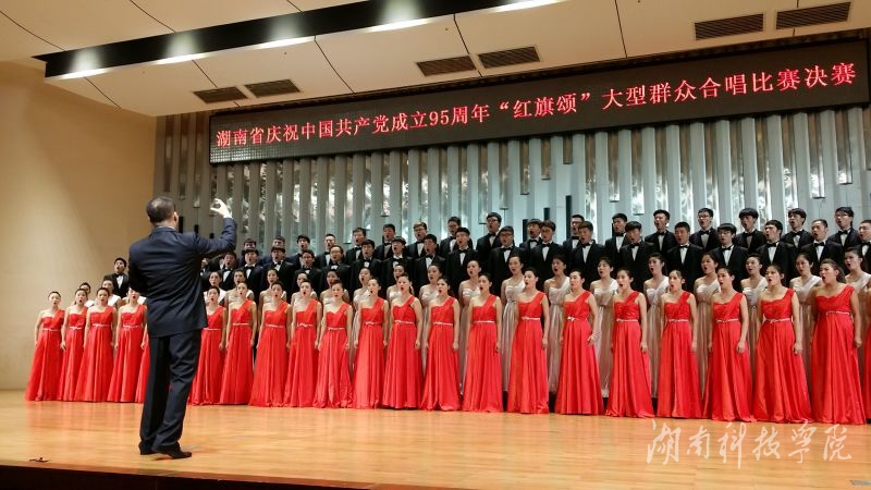 本网讯(通讯员 方新佩)6月29日上午,由湖南省文化厅主办的“红旗颂”大型群众合唱比赛决赛在省文化馆音乐厅举行。伟德官网音乐与舞蹈学院合唱队以复赛第一名的好成绩代表永州市参加决赛并荣获金奖。