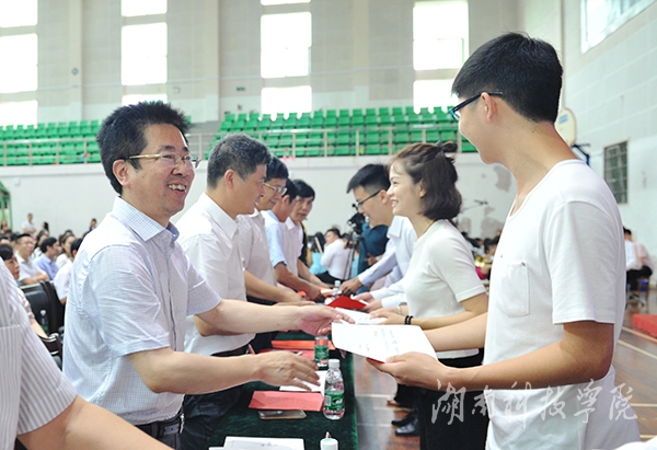 副校长程智开宣读了《关于表彰湖南省普通高等学校2016届优秀毕业生和自主创业优秀毕业生的通报》,高思慧等69名同学及龚继等3名同学分别被评为湖南省普通高等学校2016届优秀毕业生和湖南省普通高等学校2016届自主创业优秀毕业生荣誉称号。