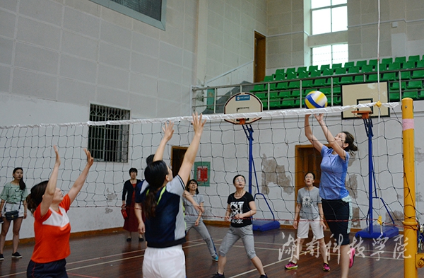 篮球场上,两组进行了激烈的比拼,大家奋勇拼搏,穿插跑动,妙传、得分,用激情与汗水传达着对运动、对生活的热爱,对团队精神的追求。经过激烈、紧张的四节比赛的角逐,最终B组取得胜利。排球场上,发球、传球、扣球,紧张而激烈,颇具专业水准。赛场外,前来观看比赛的师生们随着激烈的比赛节奏,为场上的队员加油打气,呐喊助威,将比赛一次次推向高潮。B组凭借配合默契,发球得分,运球得当,获得友谊赛的胜利。