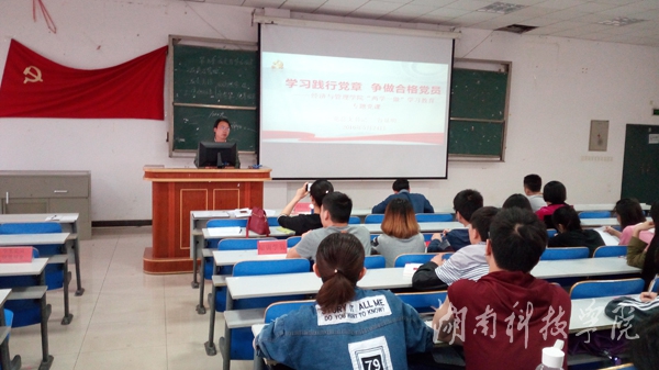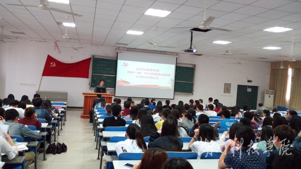 5月24日下午,经济与管理学院全体党员、入党积极分子在立信楼602教室举行“两学一做”学习教育推进会暨分党校开班仪式。