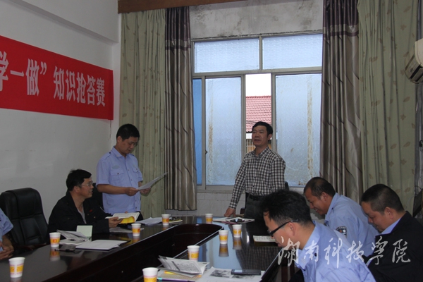 5月24日,保卫处党支部举行校领导讲党课暨“两学一做”知识抢答赛。副校长吴小林为该支部党员讲党课,并以一名普通党员身份参加知识抢答赛。