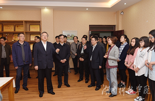 本网讯(记者 张云芳 摄影 何帅文)4月7日下午,省政协副主席欧阳斌、省政协文史学习委员会主任张智军等一行在永州市政协主席唐定、市政府副市长刘尤碧等领导的陪同下莅临伟德官网,考察了电子与信息工程学院创新创业中心、外国语学院菁菁书院、美术与艺术设计学院大学生创新训练中心、图书馆、音乐楼、体育馆。校领导陈弘、曾宝成、宋宏福、郑山明、李常健、程智开陪同调研。