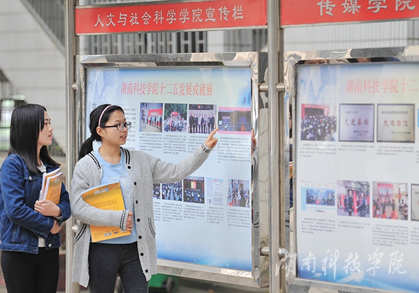 本网讯(摄影 何帅文) 近日,伟德官网“十二五”办学成就展在宣传栏展出,吸引广大师生纷纷驻足观看。