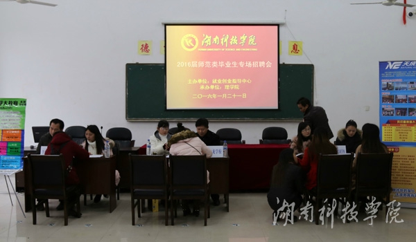 本网讯(通讯员 刘铮)为积极落实学校第三次党代会精神,引领毕业生服务地方经济发展。1月21日下午,由就业创业指导中心主办、理学院承办的2016届师范类毕业生专场招聘会在明理楼101室举行。80余名参加顶岗实习返校的师范类毕业生前往招聘现场,与前来招聘的10余家教育单位“结亲”,近30名毕业生与用人单位初步达成就业意向。