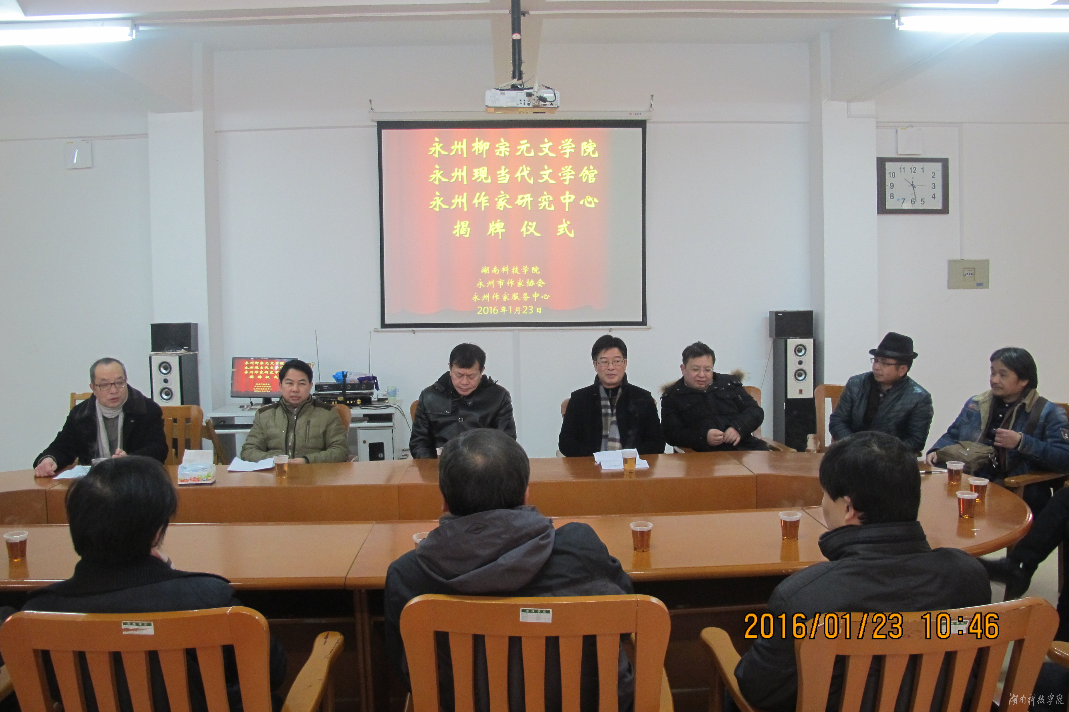本网讯(通讯员 潘清远)雪后初霁,喜气洋洋。1月23日上午,由永州市作家协会、永州作家服务中心和伟德官网联合举办的永州柳宗元文学院、永州现当代文学馆、永州作家研究中心举行揭牌仪式。副校长宋宏福、李常健,副校级督导、工会主席陈仲庚,永州市委宣传部副部长蒋三立,永州市作协主席郑正辉出席仪式并揭牌。学校图书馆、科技处(服务地方办公室)、人文与社会科学学院负责人及《永州日报》、永州新闻网、《品读永州》代表等20余人参加会议。
