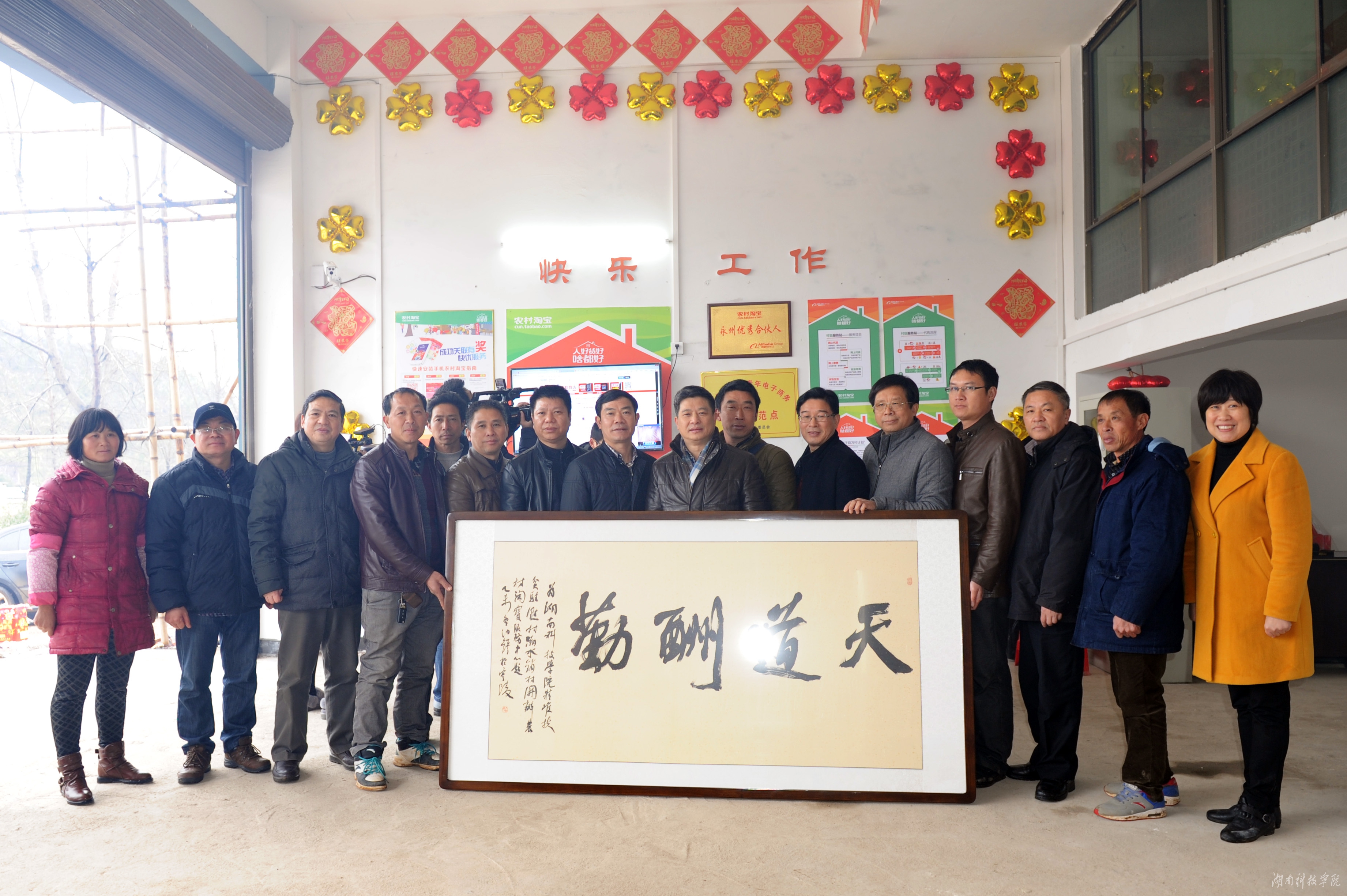 校领导唐艳明、宋宏福、郑山明、吴小林、程智开、陈仲庚还为农村淘宝创业店现场赠送了“天道酬勤”牌匾,并鼓励创业店主要以互联网思维勤劳致富,通过“网货下乡”和“农产品进城”,帮助群众节支增收,让电商扶贫成为脱贫致富的新引擎。