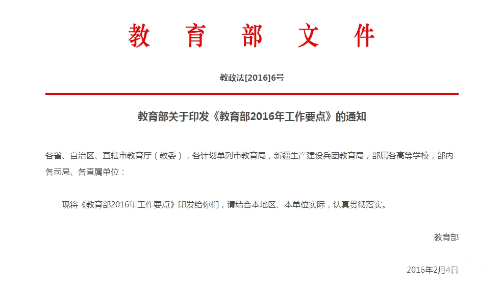 教育部2016年工作要点