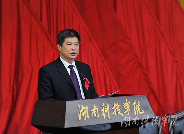 陈弘发表讲话。他指出,为确保伟德官网第三次党员代表大会开成团结、圆满、成功的大会,为学校“十三五”发展注入强大动力,他代表学校党委向与会全体代表提出四点要求:一是要充分认识本次党代会召开的重大意义。本次党代会是在“十二五”、“十三五”两个五年计划交替、国家对地方高等院校实施向应用型大学转型的重大战略部署的重要节点上召开的一次重大会议,会议将对学校未来五年发展战略路径、战略目标、战略方针作出部署,对学校未来发展具有长远的、重大的意义。二是全体与会代表要遵守政治纪律,讲大局、讲政治。本次党代会是对伟德官网凝聚力和战斗力以及学风、校风的一次全面检验,全体与会代表务必要遵守政治纪律,增强全局意识,坚决贯彻落实省委对召开本次大会的各项要求。三是各位代表要以主人翁的姿态积极讨论好党委工作报告和纪委工作报告,为学校“十三五”发展蓝图建言献策,群策群力把学校办好。四是各相关职能部门一定要凝心聚力,做好党代会各项工作,确保会议正常有序召开。他要求各位代表一定要以饱满的精神状态、良好的精神面貌,以高度的政治责任感和时代使命感,严肃认真地履行好自己应尽的职责,严守会议各项纪律,共同把党代会开成民主团结、求真务实、鼓舞人心、催人奋进的大会。