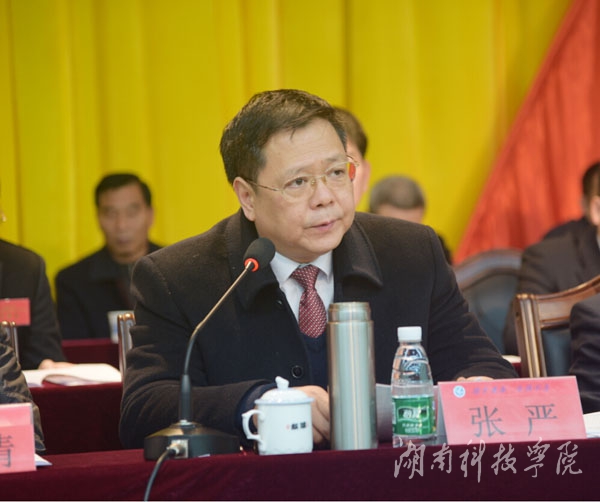 张严代表中共永州市委对大会的召开表示热烈的祝贺。他指出,在学校加快转型发展、内涵发展、特色发展的大好形势下,在“十二五”、“十三五”两个五年计划交替、国家对地方高校实施向应用型大学转型的重大战略部署的重要节点上,召开第三次党代会具有十分重大的意义。他代表市委对即将产生的新一届党委提出三点希望:一是坚守正确的办学方向。要全面贯彻党的教育方针,切实加强党的建设,紧紧围绕立德树人根本任务,为建设能够培养高质量大学生的社会主义大学提供坚强的思想、政治和组织保证。二是全面提升高等教育质量。要始终坚持把提高质量作为学校改革发展最核心、最紧迫的战略任务扛在肩上、抓在手上、落到地上,不断提升人才培养水平,为经济社会发展提供强有力的科技支撑,不断推进文化传承创新,顺利实现建成高水平应用型大学奋斗目标。三是竭尽全力服务永州可持续发展。他表示,一所大学对所在地方的发展具有最直接的、多层面的重要影响,是涵养一个区域创新活力和人文精神的重要源泉,希望学校充分发挥高校人才思想库和智囊团的作用,立足地方、服务地方,做到与地方发展同呼吸共命运,为全面建成质量优良、特色鲜明的高水平应用型大学而努力奋斗!