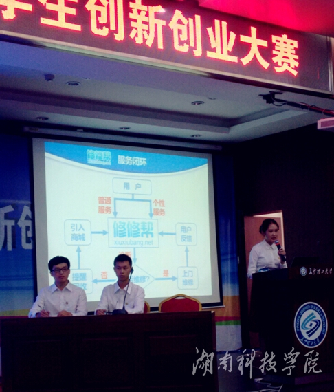 许多学生是第一次参加这种大型比赛,没有足够的经验。于是就业创业指导中心采用线上、线下相结合的方式指导学生参赛。在线上,结合学生已放暑假离校的实际情况,建立“湘科院互联网+”QQ群,开通由清华大学朱恒源教授主讲的《创新创业》精品课程,并网络上收集其他创新创业相关的资料,组织有意向的学生在线学习。在线下,实行“派出去”(如外派老师参加SYB创业培训师资班等)又“请进来”(邀请企业家、天使投资人、校外专家等来校担任创业导师)的办法,壮大指导教师团队力量,遴选和重点指导参加全省复赛的种子项目。