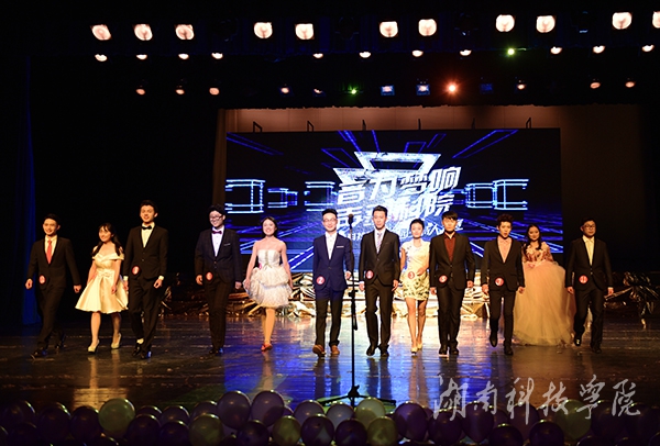 本场比赛共分为闪亮登场、主持天下、绝地复活、决胜巅峰四个环节。音乐与舞蹈学院院长邹林波、宣传统战部副部长王瑞华、校团委副书记刘佳、语委办老师徐耀君、传媒学院戏剧与影视专业老师李超担任本场比赛评委。经激烈比拼,最终6名选手进入最后决胜环节。来自经济与管理学院的潘仁博同学在第二环节表演的《新闻眼》,从亲情的角度呼吁每一个人关心自己的父母,启示深刻,感人至深;传媒学院李政锴同学的《家政开心问》为全场带来阵阵笑声;来自电子与信息工程学院的张文同学则用一段《老张说事》的脱口秀赢得全场热烈的掌声。第三环节的才艺展示,选手们纷纷拿出了自己的看家本领。音乐与舞蹈学院杨锦洲同学的一首《如果这都不算爱》让全场沉浸在了他深情的歌声里;传媒学院12号选手邓豪更是用一段舞蹈串烧将整场比赛推向了高潮,场下观众挥动着手里的荧光棒,不时高呼呐喊。在紧张的巅峰对决中,6名选手即兴发挥,展示出了他们的随机应变能力和多变的主持风格。传媒学院11号选手邹正昌用《新闻联播》的主持风格向观众介绍了五中全会和生态文明建设两方面内容,得到了评委老师的一致好评。