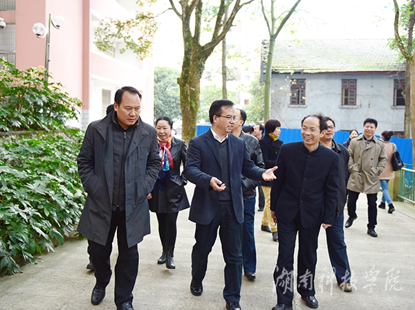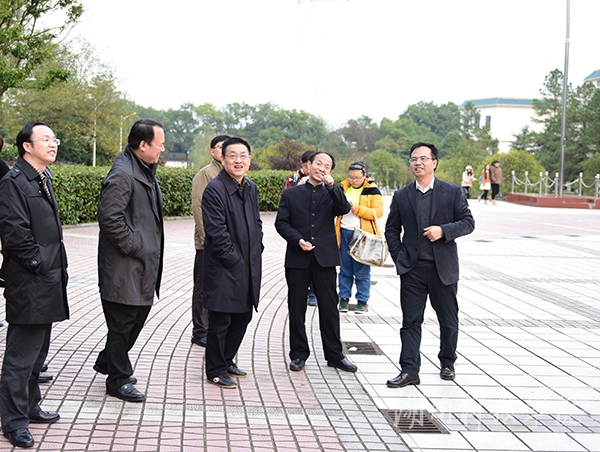 陈弘对秦裕辉一行的到来表示热烈欢迎,兴致勃勃地陪同参观了校园。陈弘结合伟德官网办学概况、发展历史边走边介绍。在文化广场上,陈弘介绍了伟德官网的地理位置,并就弘毅楼、博雅楼、明德楼等在校训中的蕴意进行生动解说,他引用中医中“阴阳调和”的理念介绍学校的布局。秦裕辉一行还参观了伟德官网布克校园书店、图书馆,详细考察了“柳宗元研究所”与“舜文化研究基地”等学术科研基地。